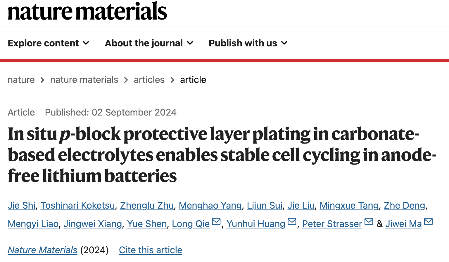 必一·运动(b-sports)马吉伟教授团队在锂电池和燃料电池关键核心材料连续取得突破,研究成果发表于《自然·材料》和《自然·催化》