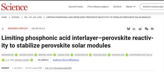 钙钛矿太阳能电池因其高光电转换效率与低制造成本潜力,被视为下一代光伏技术的重要发展方向。然而,其在高温与全光谱光照下的长期稳定性问题,尤其是空穴传输层与钙钛矿界面降解导致的性能衰减,严重制约其商业化进程。研究团队聚焦于被广泛用作空穴传输材料的膦酸基自组装单分子层(PA-SAMs)与钙钛矿层的界面,揭示了其在光热协同作用下降解的化学本质,为提升光伏寿命提供了新思路。该研究成果于2026年1月1日在国际顶级学...