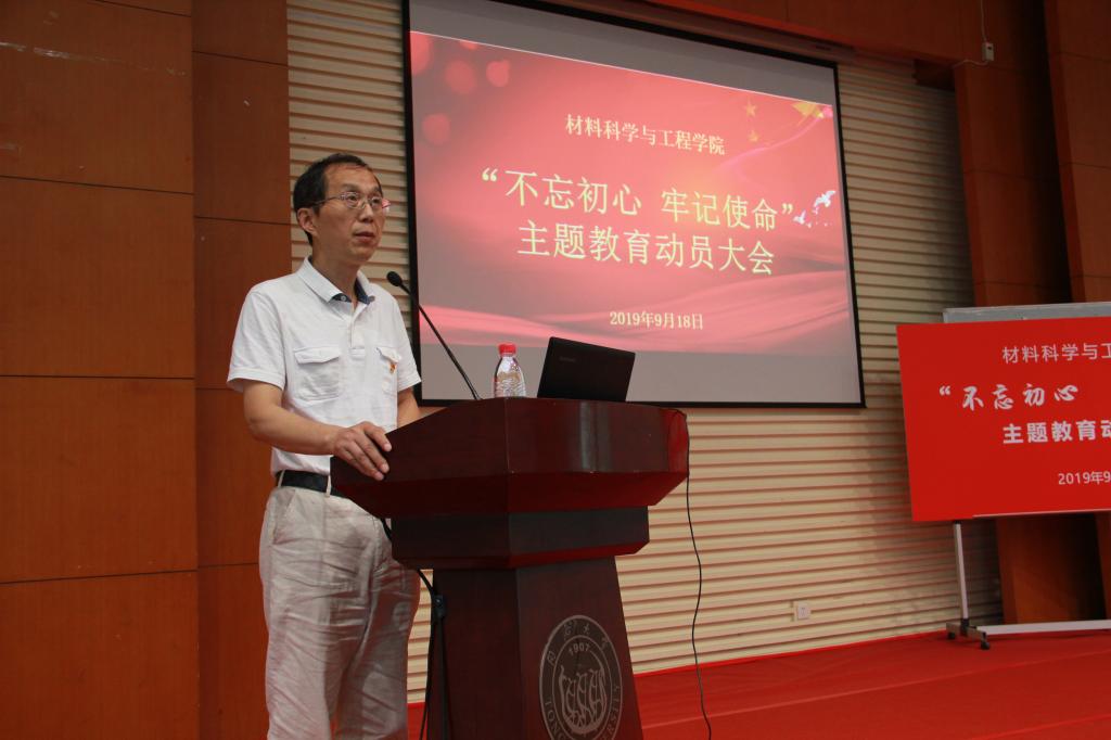 王中平书记首先就学院开展“不忘初心、牢记使命”主题教育进行了动员和部署。他指出,学院要深入贯彻习近平总书记在“不忘初心,牢记使命”主题教育工作会议上的重要讲话精神,并结合学院实际,聚焦学习贯彻习近平新时代中国特色社会主义思想这条主线,制定行之有效的主题教育实施方案,将理论知识体现到学习教育、调查研究、检视问题、整改落实各方面。他强调:学院领导班子和全体师生要深刻认识此次主题教育的重要意义,把主题教育作为全院的重大政治任务,把思想和行动统一到中央决策部署上,提高政治站位和政治觉悟,紧紧围绕为党育人、为国育才的初心使命,以彻底的自我革命精神解决违背初心和使命的各种问题,扎扎实实地落实好主题教育,开创学院工作新局面。