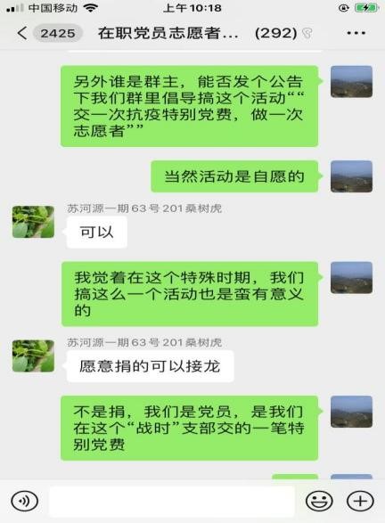 疫情时期的“特殊党费”。为了防护隔离服能尽快购置到位,在社区一线中发挥作用,谭老师主动在社区报到党员群里发出了倡议:党员自愿参与交一笔“特殊党费”购买隔离服捐赠给六泉桥社区所辖的4个小区物业和居委会用于抗议。此次“特殊党费”得到了社区广大党员的积极响应,共发起三笔,总额5000元,4月8日下午正式到活捐赠给了社区,并委托社区支部书记转捐赠给各个小区物业,得到了社区居民的广泛好评。