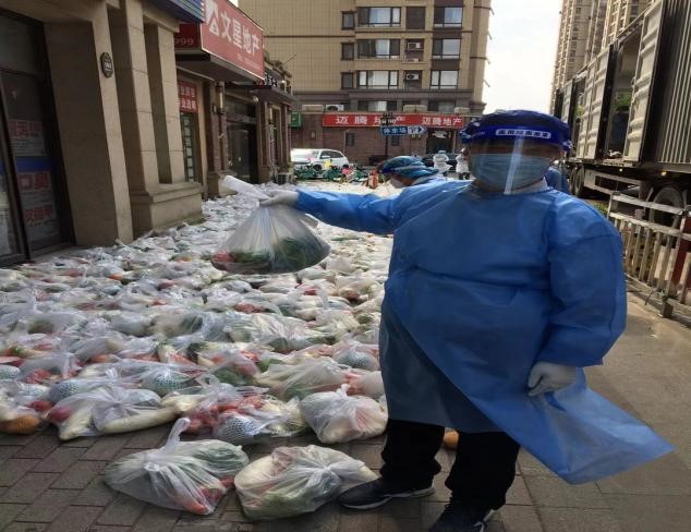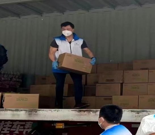 图1:谭庆刚老师作为志愿者为小区居民递送食物