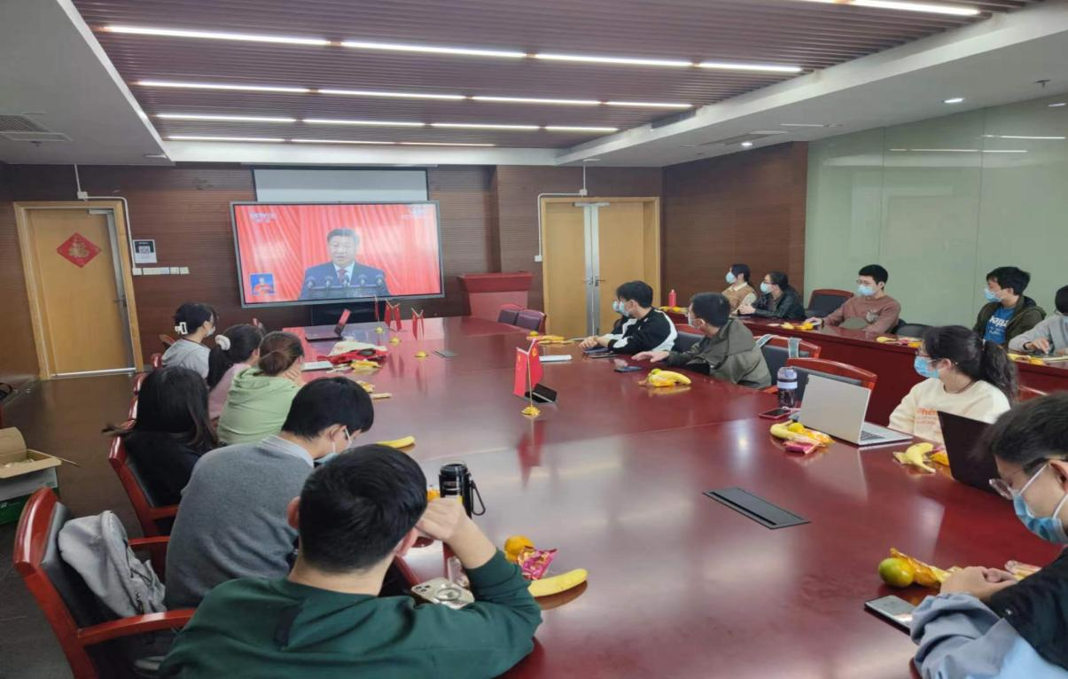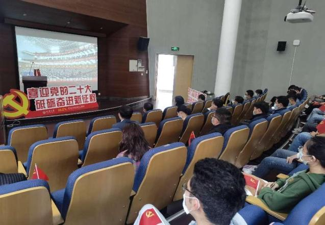 2022年10月16日上午10点,必一·运动(b-sports)党委组织学院全体师生收看中国共产党第二十次全国代表大会,学院领导班子成员、党支部书记、师生代表75人在嘉定校区德才馆报告厅及441会议室集中收看,其余党员同志300余人因疫情防控要求,在线上进行同步收看。
