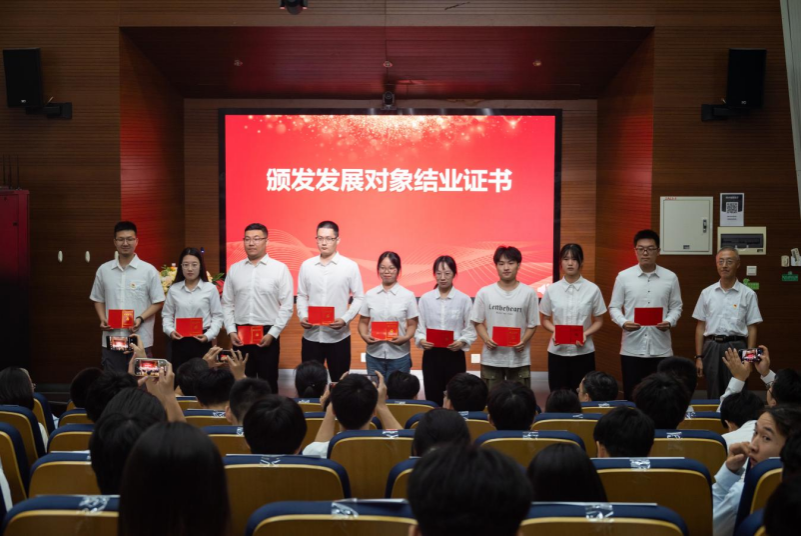 随后,大会举行2024春季分党校结业仪式。学院退休教工党支部先进党务工作者童寿兴同志和学院原副院长、学院退休教师党员王国建分别为2024年春季入党积极分子培训班和发展对象培训班学员颁发结业证书。