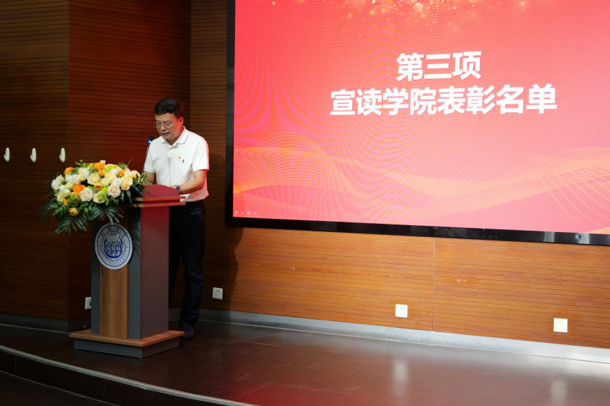 学院党委副书记学院邱军同志宣读先锋党员、先进党务工作者、先锋党支部的表彰名单。邱军书记指出,希望广大党员同志对标身边先进,感召前行力量,激发责任担当。