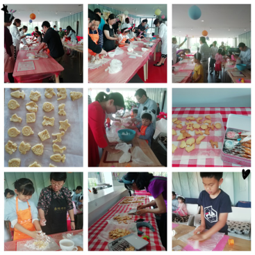 之后,同二代们来到艺术与传媒学院的咖啡吧,在烘焙师的指导下,学习饼干的制作成型。从发酵奶油到混合指法,从揉捏技巧到成型制备,孩子们与父母们一起动手,体会成型的乐趣。其中,年龄大的孩子自主制作,设计花样,伙伴间还相互比一比;年龄小的孩子,绕膝于手忙脚乱的父母旁边,帮帮忙,递送工具,偶尔还给已做好的饼干胚上再盖上具有破坏性的一章;家长们有的闲坐一旁,相互交流养育心得,有的弹奏起一曲悠扬的乐曲,有的陪着孩子来到气球舞台感受梦幻世界。咖啡吧里热闹非凡,洋溢着孩子们的笑声。