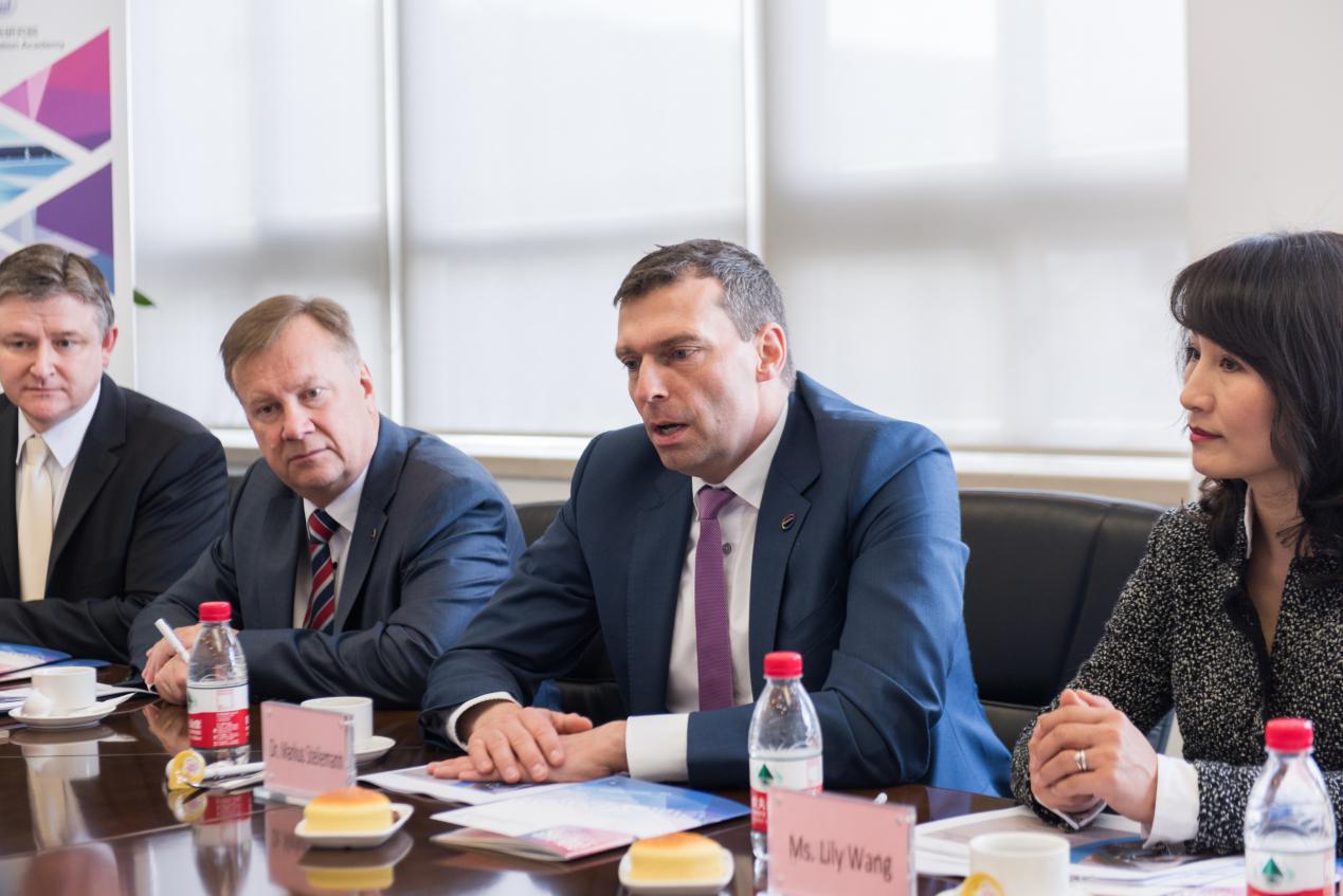 会前,必一运动常务副校长伍江教授与研究院指导委员会成员进行了亲切会谈。伍江校长向施乐文博士介绍了依托必一运动新成立的上海自主智能无人系统科学中心,希望必一运动与科思创能够强强联合、优势互补、携手共进,加快创新成果产业化步伐。
