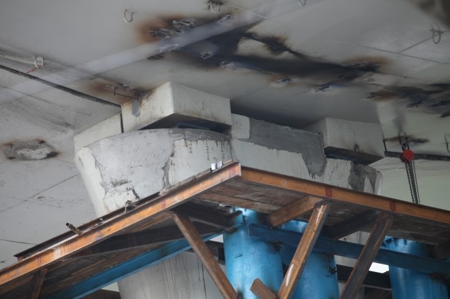 看过中环受损一幕的人都还记得,百吨大卡车躺在高架的外沿,本只能承受30吨的桥面向外倾斜翘起,路面高差达到40厘米,翘起的百米桥面将桥梁墩台生生崩出一个大大的豁口,还有本用于隔震阻挡冲击的挡块也变得松脆斑驳,伤痕累累,“此处是交通咽喉,不能换柱子,你若修复,所用材料必须和桥墩快速形成一个整体,且能保证其长期性能。”于是,具备超高强度、超高韧性、超高耐久性,施工方便快捷的超高性能混凝土当然就是最理想的材料。