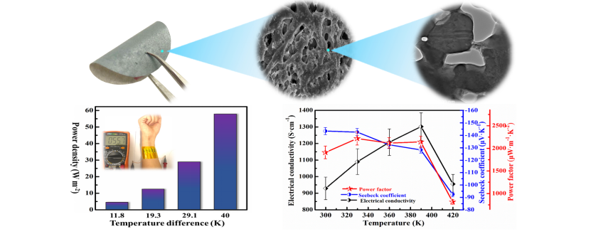 另外,他们对柔性热电材料及器件的最新研究进展做了详细的综述,对该方向的研究提出了存在的问题、可能的思路和发展方向。相关综述以“Recent advances in flexible thermoelectric films and devices”为题发表在Nano Energy 89 (2021) 106309,联合培养硕士生李响为该论文第一作者,通讯作者为蔡克峰教授,共同通讯作者为上海应用技术大学杜永教授。