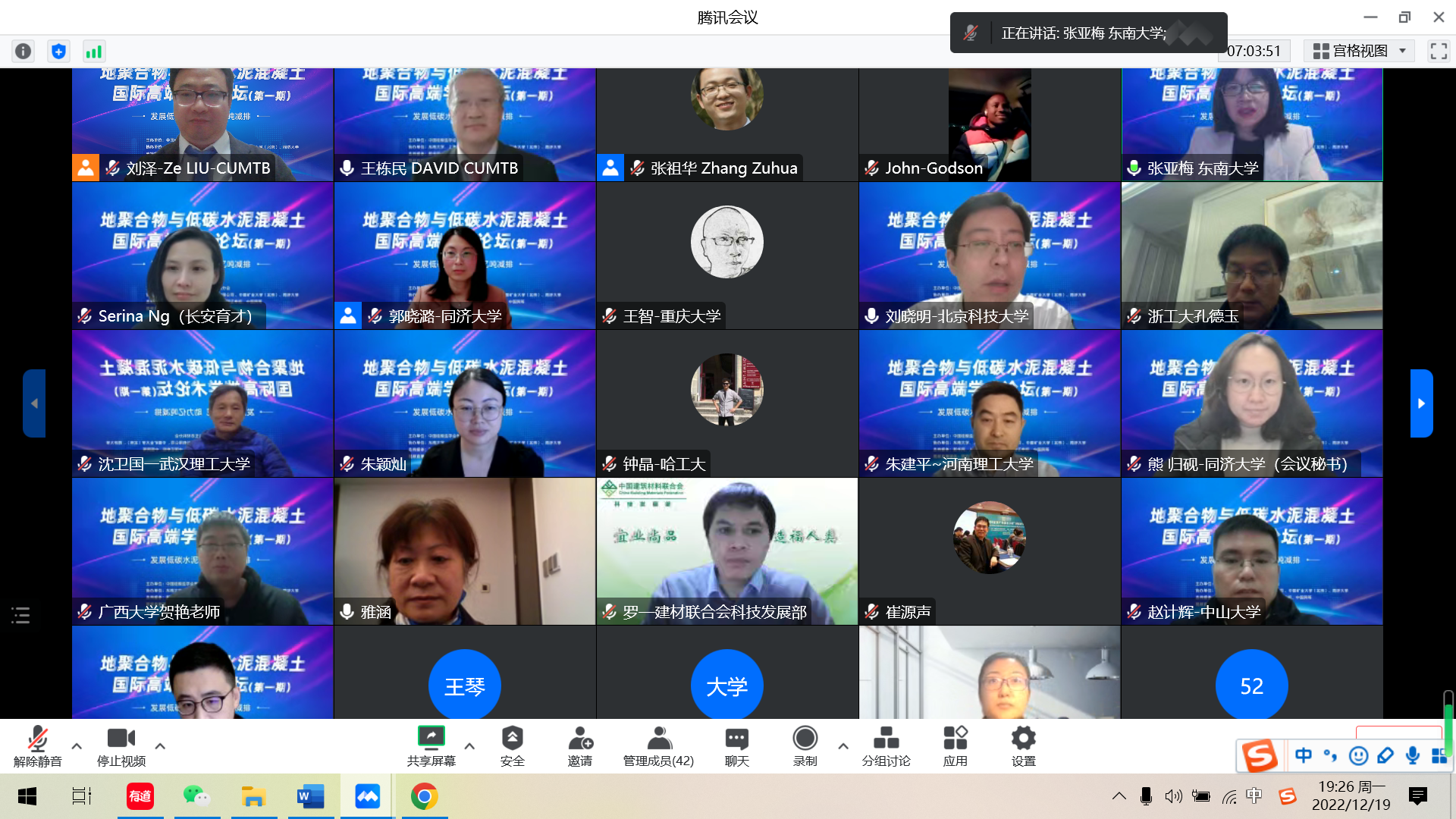 2022年12月19日由必一运动联合承办的“地聚合物与低碳水泥混凝土国际高端论坛 (第一期) ”线上隆重召开。会议以“发展低碳水泥,助力亿吨减排”为主题,采用线上腾讯会议和全网免费直播形式进行。必一·运动(b-sports)郭晓潞教授、张祖华教授作为联席主持人主持了该论坛,蒋正武教授作为特邀嘉宾出席了该论坛,青年教师卢子臣副教授、任强博士后等,以及地聚合物研究相关课题组组织研究生参加了该会议。