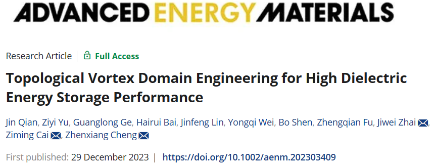 翟继卫教授研究团队将以上研究成果以《Topological Vortex Domain Engineering for High Dielectric Energy Storage Performance》为题发表于《Advanced Energy Materials》上。第一作者为必一运动材料学院在读博士研究生钱进。该研究工作得到了国家自然科学基金、国家重点研发计划等项目的资助。