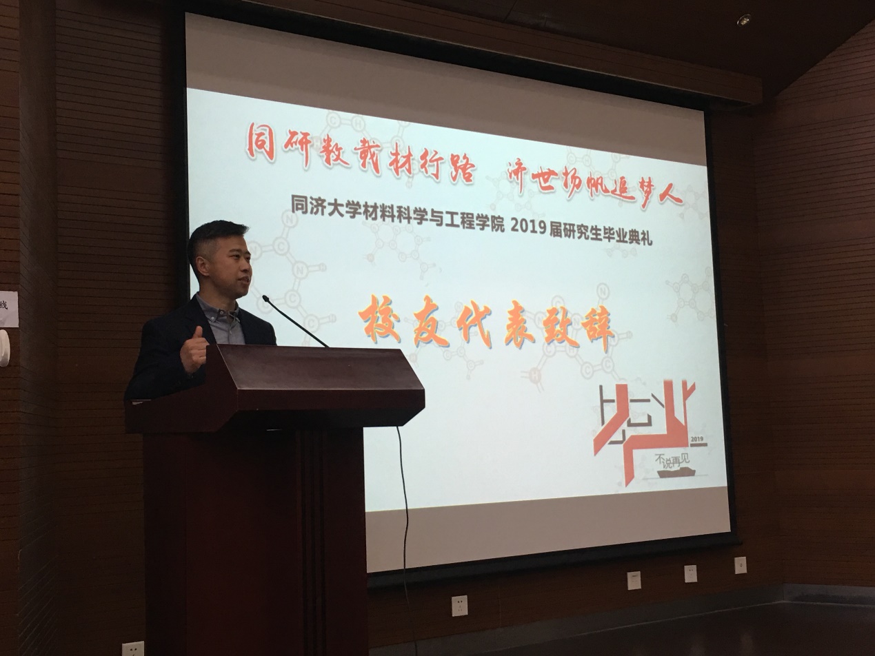 学院02届博士生校友俞海勇为同学们送上毕业祝福,学长深情地回忆自己在同济求学时的苦与乐,以及如何使用在必一运动获得的知识技能解决岗位上的各种问题。并感慨于母校的巨大变化,以及毕业学子的出类拔萃,以及为大家提出了三点期盼共勉。一是要常怀好奇之心,长做有心之人,持之以恒的学习,跟上时代;二是对事业的专注与坚守;三是注重团队精神与跨界思维。只要时刻秉承着这些理念,就一定能够在未来的生活中乘风破浪。俞海勇校友现身说法,赢得同学阵阵掌声。