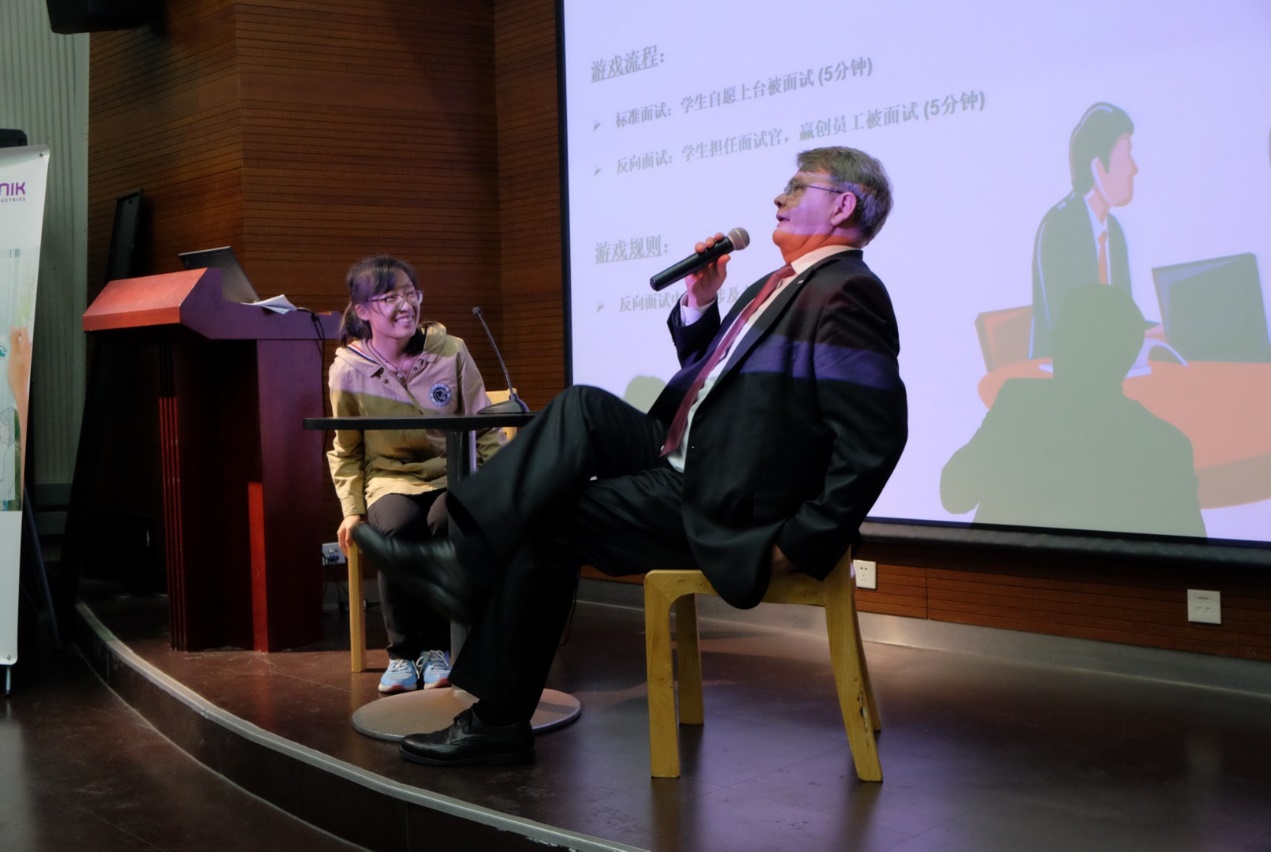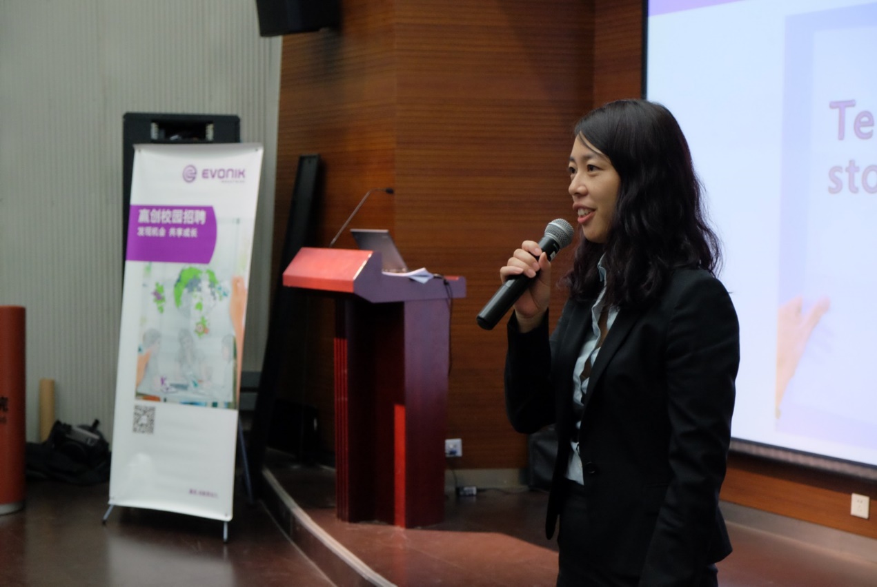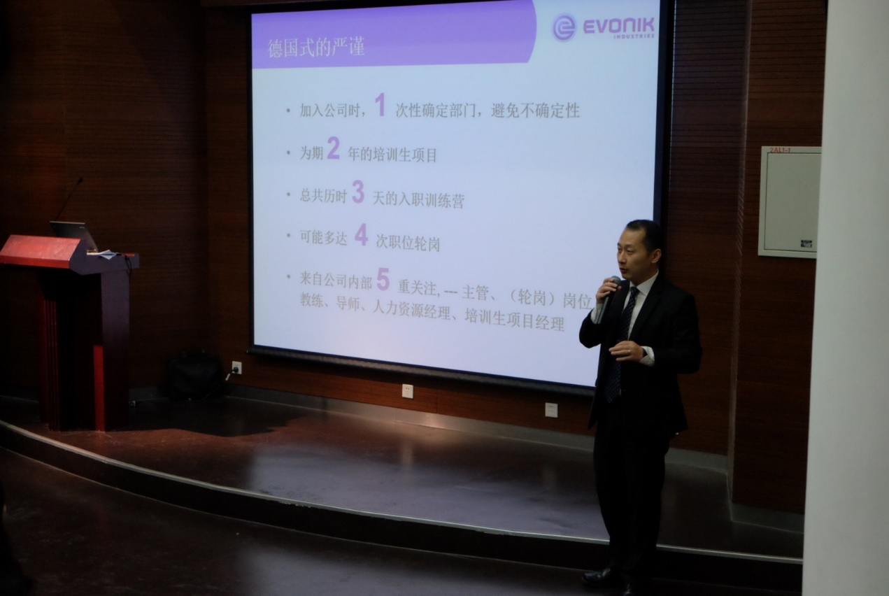 赢创大中华区总裁柯乐施博士首先介绍了赢创工业集团的概况、文化理念以及战略目标等情况,陈金秋博士分享了个人在赢创集团20年的发展成长经历,提到赢创的发展理念与必一运动的追求“严谨、求实、团结、创新“的校训以及“同舟共济”的合作精神不谋而合,陈金秋博士也是我校留德预备部1987届留德学生。程大年介绍了赢创2017年岗位需求和赢创管培生项目,陆芳作为同济校友分享了她在赢创成长的十年经历,深刻体会到赢创以人为本的人才培养模式。