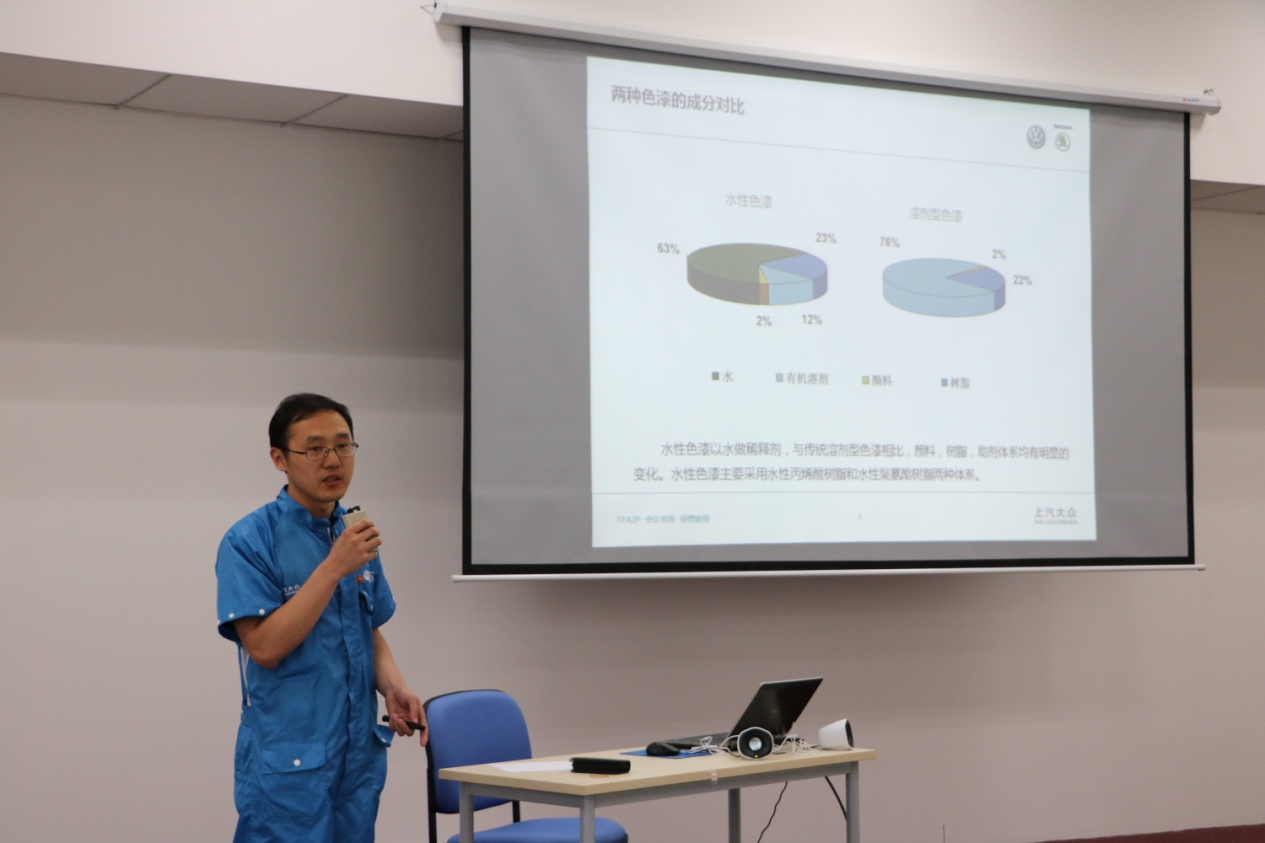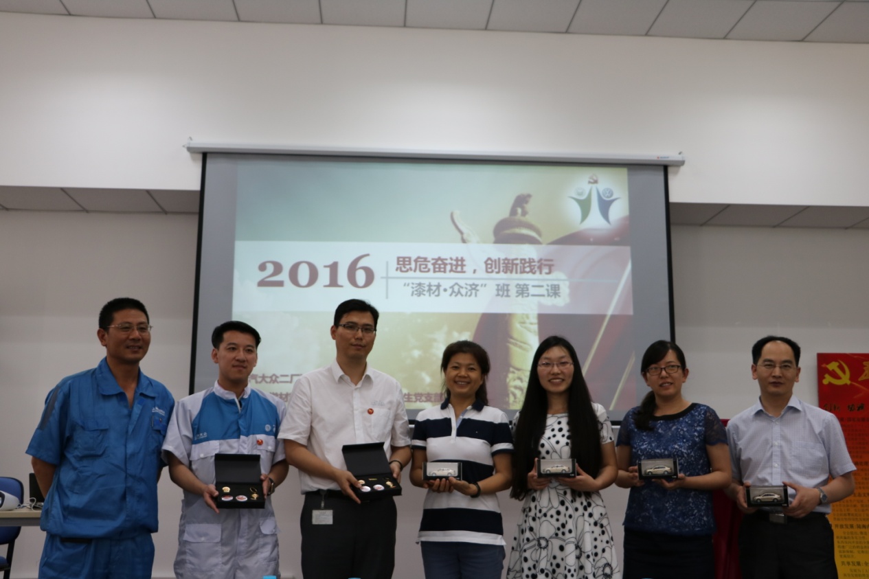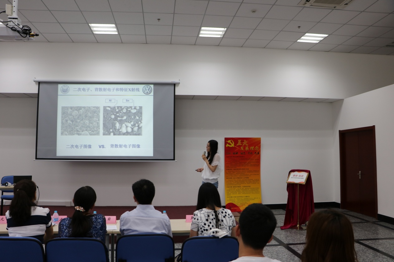 揭幕仪式结束之后,《漆材·众济》讲堂第二讲——理论篇开讲。随后是来自上汽大众安亭汽车二厂一支部的宣传委员陈杰同志带领党员们学习了“五大发展理念引领中国未来”的报告,使全体党员领会到“五大发展理念”中发展的动力、平衡、载体、空间与成果是一个有机整体,大家对“五大发展理念”形成全面的领会,党员同志在学习之后积极发言交流学习感受,针对学生党员而言,需要积极参与创新项目,成为综合型、全方位的高素质人才,拥有开放包容的性格与公平的心态。对于企业,需要创新的科学技术、协调企业结构与产品形式、提高持续发展的能力、坚持“走出去”的理念、构建和谐的发展体系,促进企业综合竞争力的提升。随后来自上汽大众安亭汽车二厂一支部的王宗明同志为学生党员介绍了“2010v涂装工艺”,对水性漆、溶剂性漆的应用、优缺点及区别做了详细介绍,使学生党员对于涂装工艺形成初步认识。接着,必一·运动(b-sports)高分子系研究生党支部党员黄秋桐同志,为全体党员讲解了“扫描电子显微镜及能谱分析仪”,使企业党员对于材料表征技术具有更为直观的了解,为后期双方在专业方面的合作奠定基础。