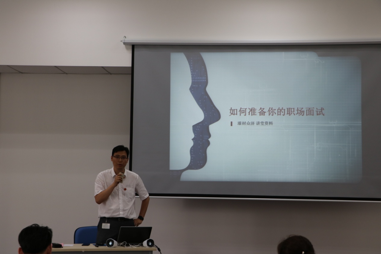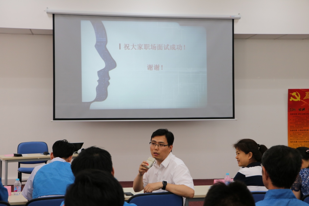 最后,来自上汽大众安亭汽车二厂的党总支书记、油漆车间高级经理曹轶同志为同学们带来了一堂“职场必修课”——专业面试要点及技巧。曹经理以一位专业资深人士的身份,为在场学生党员讲述如何写简历、如何让你的简历有亮点、面试的注意事项、用人单位的需求和关注点等等,课后学生党员们积极提问,与曹经理一起探讨“简历、面试”的相关问题,同时来自必一运动材料学院的教师党员们也积极发言,共同为学生党员职业发展规划、求职面试环节解决相关疑惑。