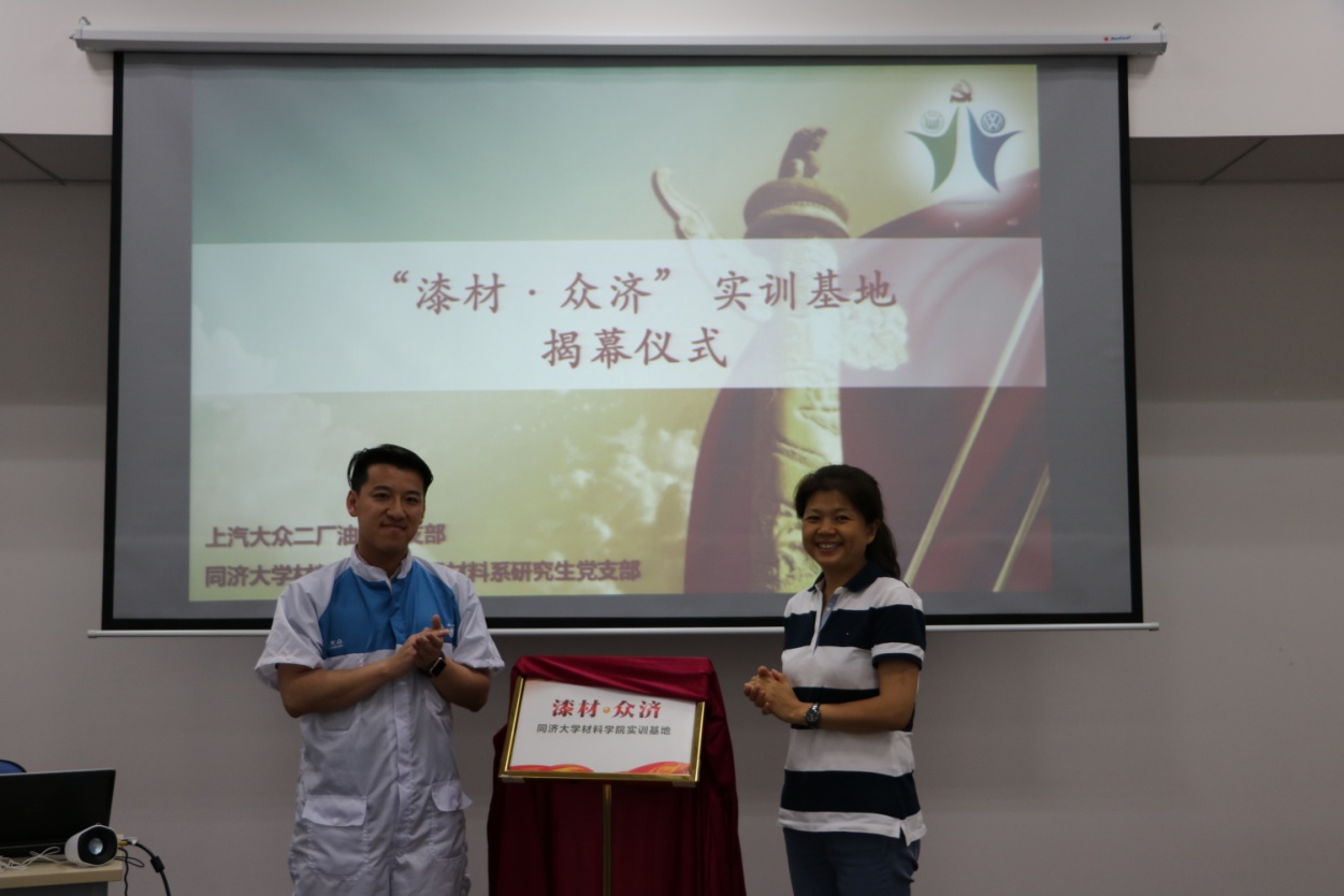 本次活动在上汽大众安亭汽车二厂培训室举行,共分为三个部分。首先是校企合作创立“漆材·众济”实训基地的揭牌仪式。必一运动材料学院党委副书记王凌凌老师、上汽大众安亭汽车二厂党支书记刘涛共同为“漆材·众济”实训基地揭幕,并分别发言表达对“校企合作”的支持与期望。必一运动材料学院党委副书记王凌凌老师表示校企合作是双方党支部进行党建的新形式、新途径,双方支部在前期合作基础上,应更多开展专业合作、互访交流等活动,同时迫切希望企业对学生党员的综合素质发展提供帮助,如企业为学生提供实习机会、讲述面试技巧等等。而上汽大众安亭汽车二厂刘涛书记表示校企合作是双方“走出去、请进来”方式的具体体现,双方支部在专业方面的合作仍需要进一步增强,企业会尽最大努力做好“校企党建”工作。