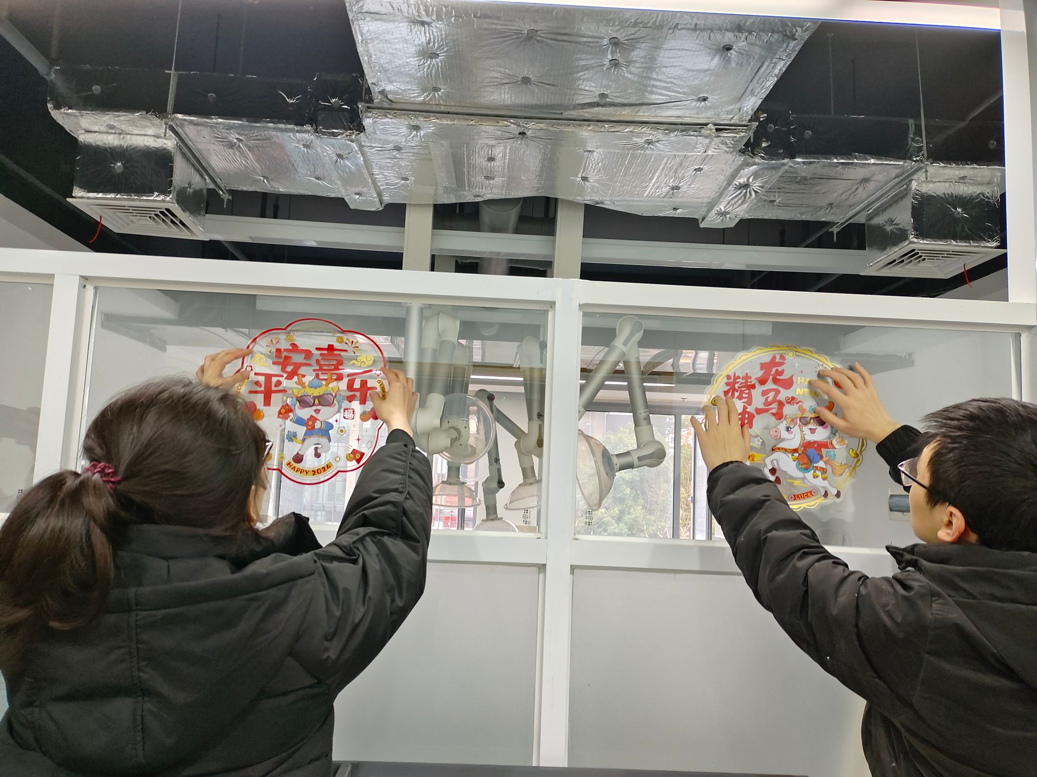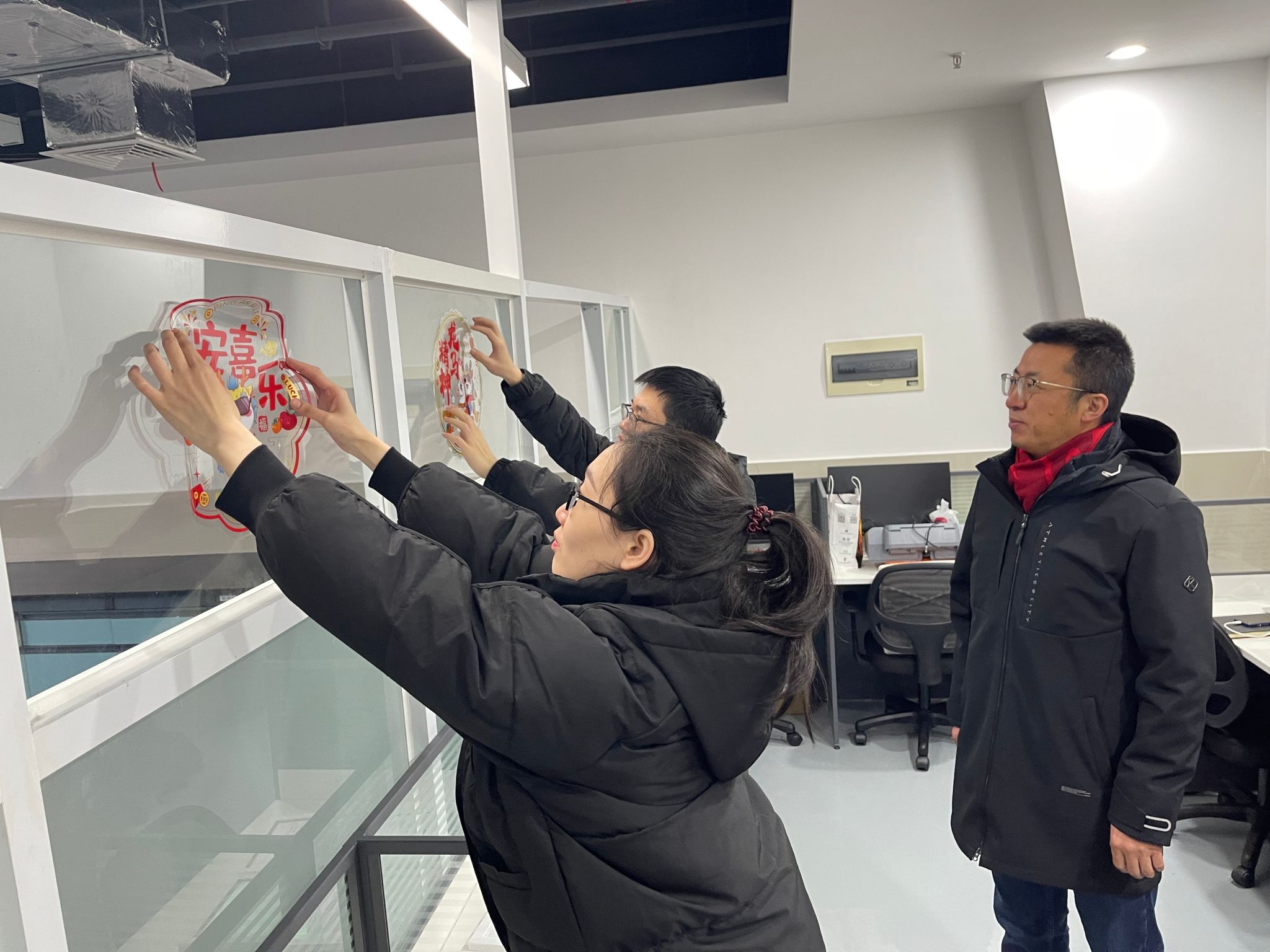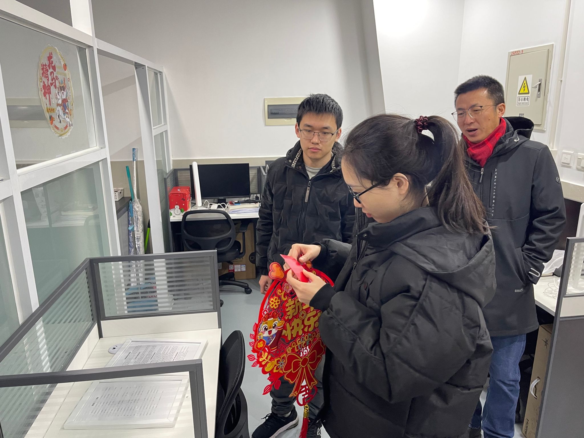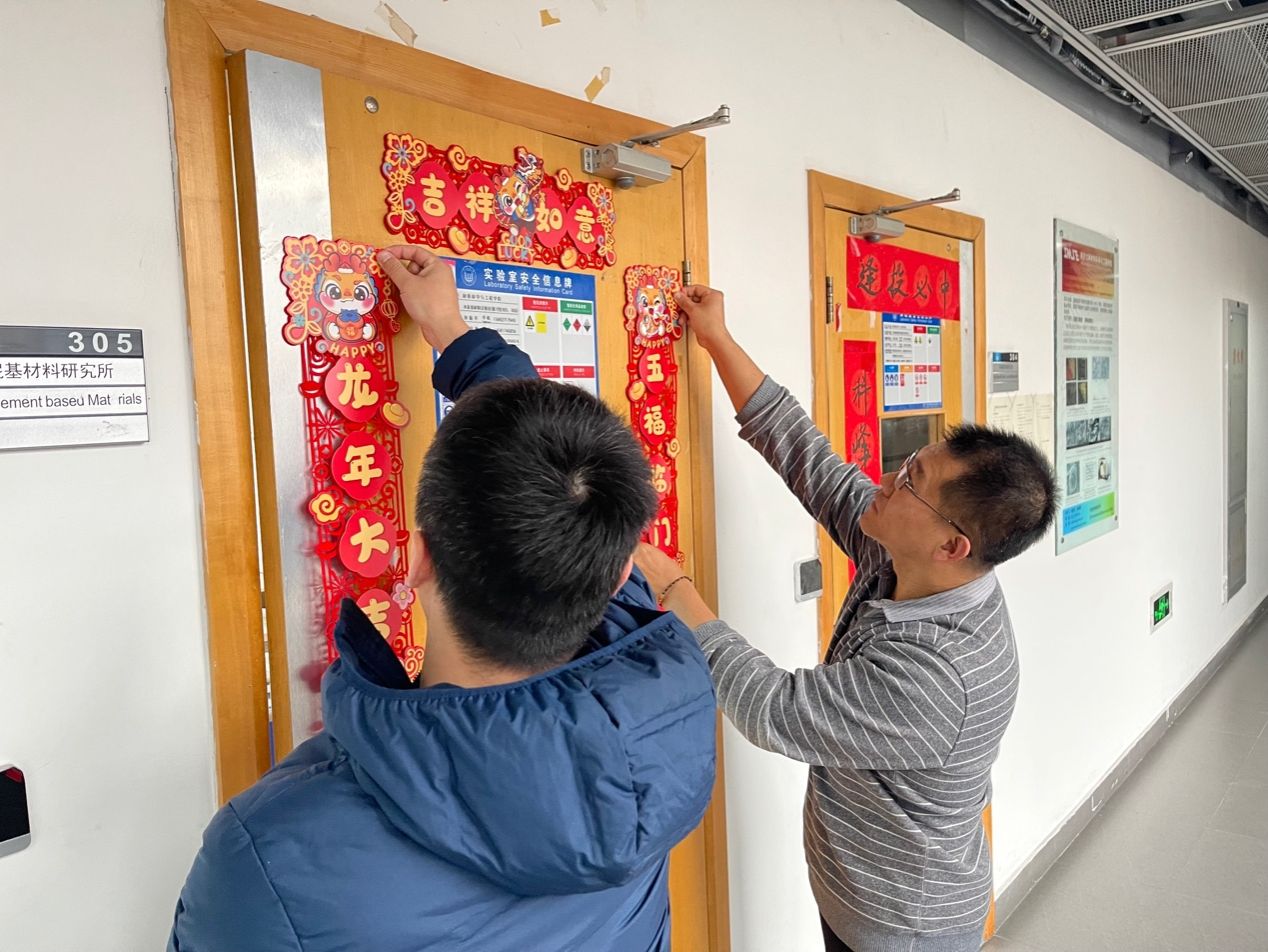 旨在为寒假坚持奋斗的每一位学子送达浓浓的关爱,2月1日,院长许维、党委副书记梁春江以及必一运动办公室老师一同走访实验室,看望并慰问了在校为科研拼搏的学生,通过亲切深入的互动交流,老师们全面了解学生寒假期间留校的原因或离校较晚的学生日程安排,询问了近期的学习、科研情况与生活需求,表示学院为留校学子开通科研测试绿色通道。同时叮嘱同学们寒假期间要注意劳逸结合,保重身体,遇到困难及时与学院的老师们联系,学院会尽全力帮助同学们解决。最后学院老师与同学们一起用活泼萌趣的龙年窗花、对联装点实验室,为大家送上了温馨的新春祝福,令莘莘学子感受到“材料大家庭”的温暖。