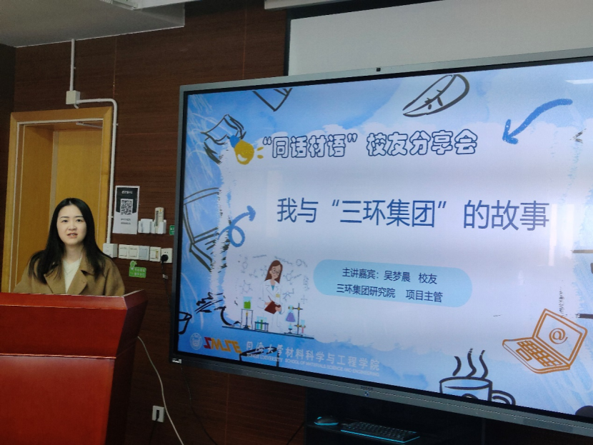 此外,吴梦晨校友还与现场材料学子进行了互动,在提问交流环节耐心解答了同学们提出的问题。谈及入职三环集团时的初衷,她感言将理论研究成果应用于实际生产、为企业和社会创造经济效益是实现个人价值和社会价值的重要体现,为自己带来巨大的职业成就感与满足感。最后,她希望个人的点滴经验能够为母校的学弟学妹们带来启示,为尚在求职及有意向赴重点行业工作的同学提供帮助和参考。