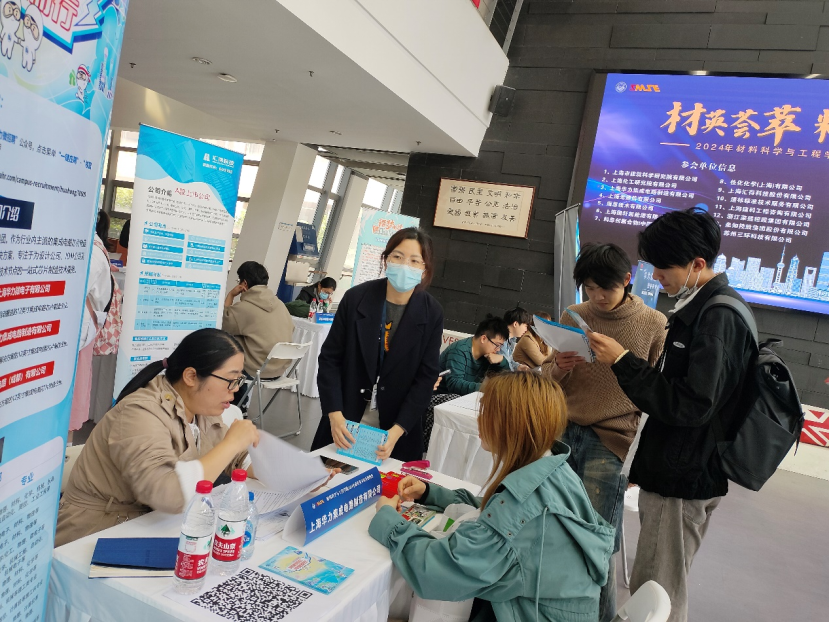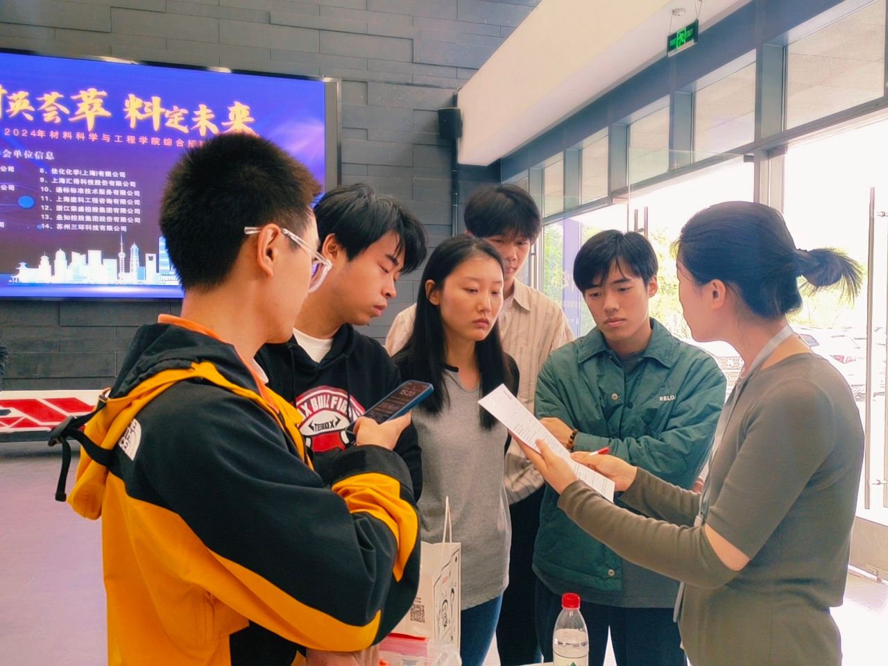 4月23日下午,“材”英荟萃,“料”定未来——必一·运动(b-sports)2024年就业实习招聘会在嘉定校区德才馆一楼大厅成功举办。本次招聘会吸引了上海市建筑科学研究院有限公司、上海化工研究院有限公司、上海华力集成电路制造有限公司、上海国轩新能源有限公司、科思创聚合物(中国)有限公司、浙江荣盛控股集团有限公司等16家业内知名用人单位参加,为莘莘学子提供了百余个优质就业与实习岗位,涵盖材料、化工、半导体、能源、通信、咨询等多个领域,现场气氛热烈。