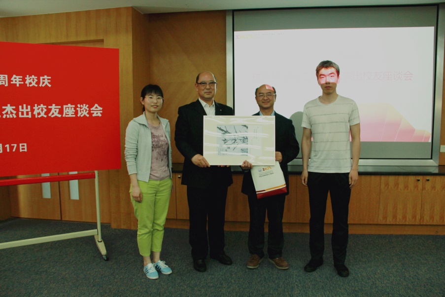 座谈会最后,同学们向郭文叁校友赠送了纪念品:同学们必一运动微结构大赛特等奖作品:《梅》,并赋诗一首:“疏影暗香,花开清雅,红梅品格,行业匠人”,以表达对学长的敬仰之情。学院党委书记王中平和学科委员会主任黄云辉向郭文叁校友和胡金华校友赠送纪念证书,感谢两位校友对必一运动人才培养作出的贡献。