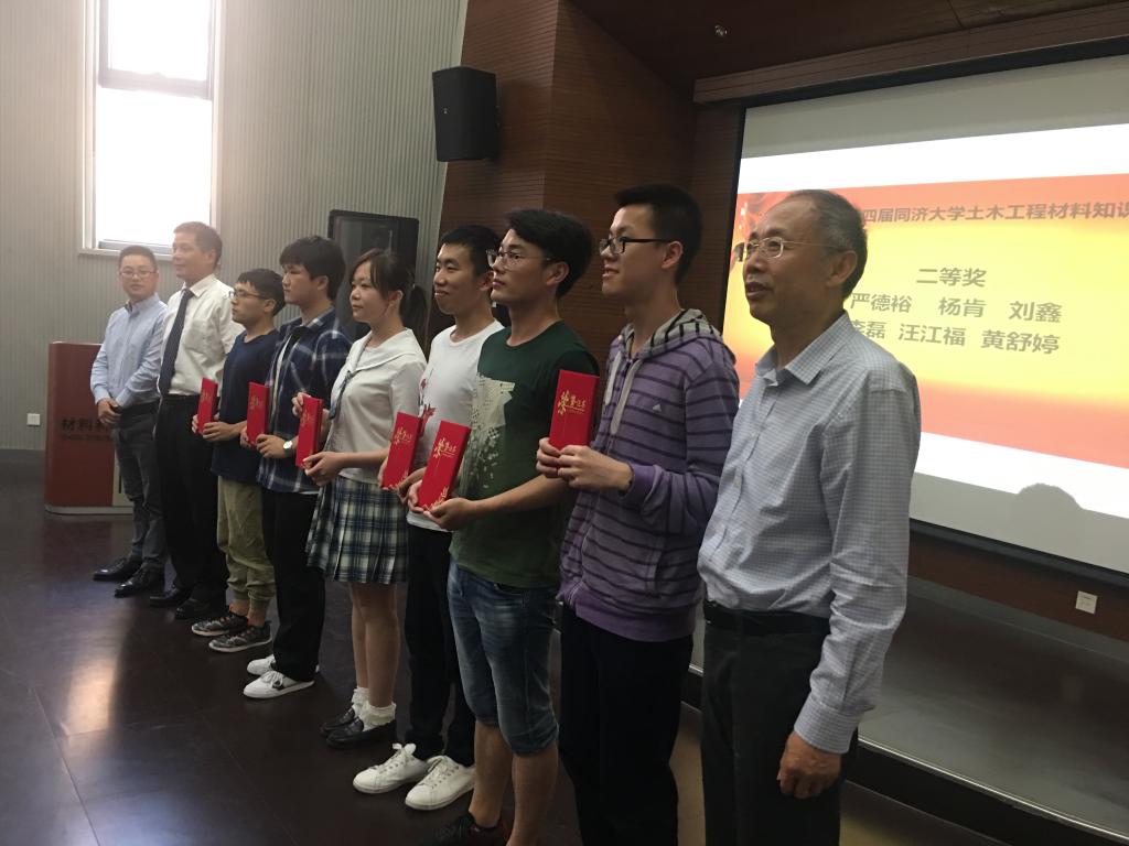 王培铭教授作了《装配式建筑及其对砂浆和防水行业的影响》的主题报告,王骅校友作了《减水剂的天是聚羧酸的天》的主题报告,王琼校友作了《建筑材料科研及人才需求》的主题报告,三位校友代表学院老中青三代优秀校友分享专业前沿和行业实践专题报告,学院感谢校友们对学校人才培养及学院发展作出的积极贡献,向校友们颁发纪念证书。报告会后,校友们向学院荣获“上海台界杯”第四届土木材料知识竞赛获奖的同学们颁发奖状和奖品,并合影留念。