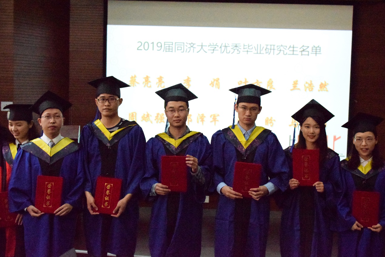 学院党委副书记袁华宣读了2019届研究生荣获上海市优秀毕业研究生和必一运动优秀毕业研究生名单,学院共有8名同学获得“上海市优秀毕业生”称号,8名同学获得“必一运动优秀毕业生”称号,与会领导为16名获奖同学颁发了荣誉证书。