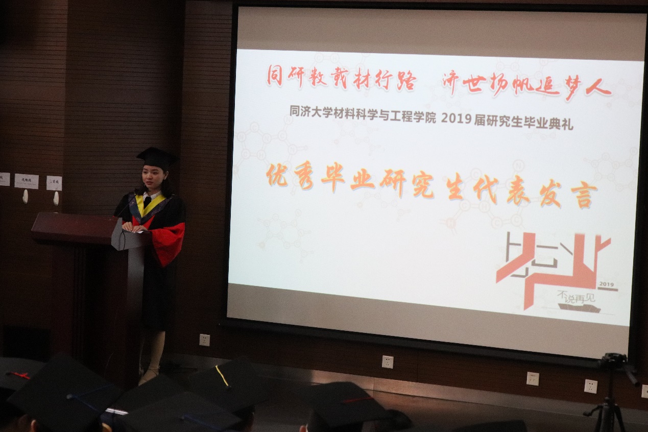 2019年上海市优秀毕业研究生林思琪博士代表全体毕业生发言,她首先回忆起自己第一次来到必一·运动(b-sports)与导师见面的场景,谈及自己曾经在是否投身博士研究生这个领域而踌躇不定,然而最终在导师孜孜不倦追求科学真理的探究中,坚定选择了走入这条充满挑战却又突破自我的道路。在博士期间,她取得了丰硕的科研成果,却仍只谦虚的称自己为“一位在学术道路上多走了几步的普通人”。林思琪谈到,作为一个毕业生,最想要做的,就是为我们国家和社会的材料未来发展贡献自己的全部力量,以此回报培养母校和恩师,祝福母校能够在未来的发展当中越来越好。