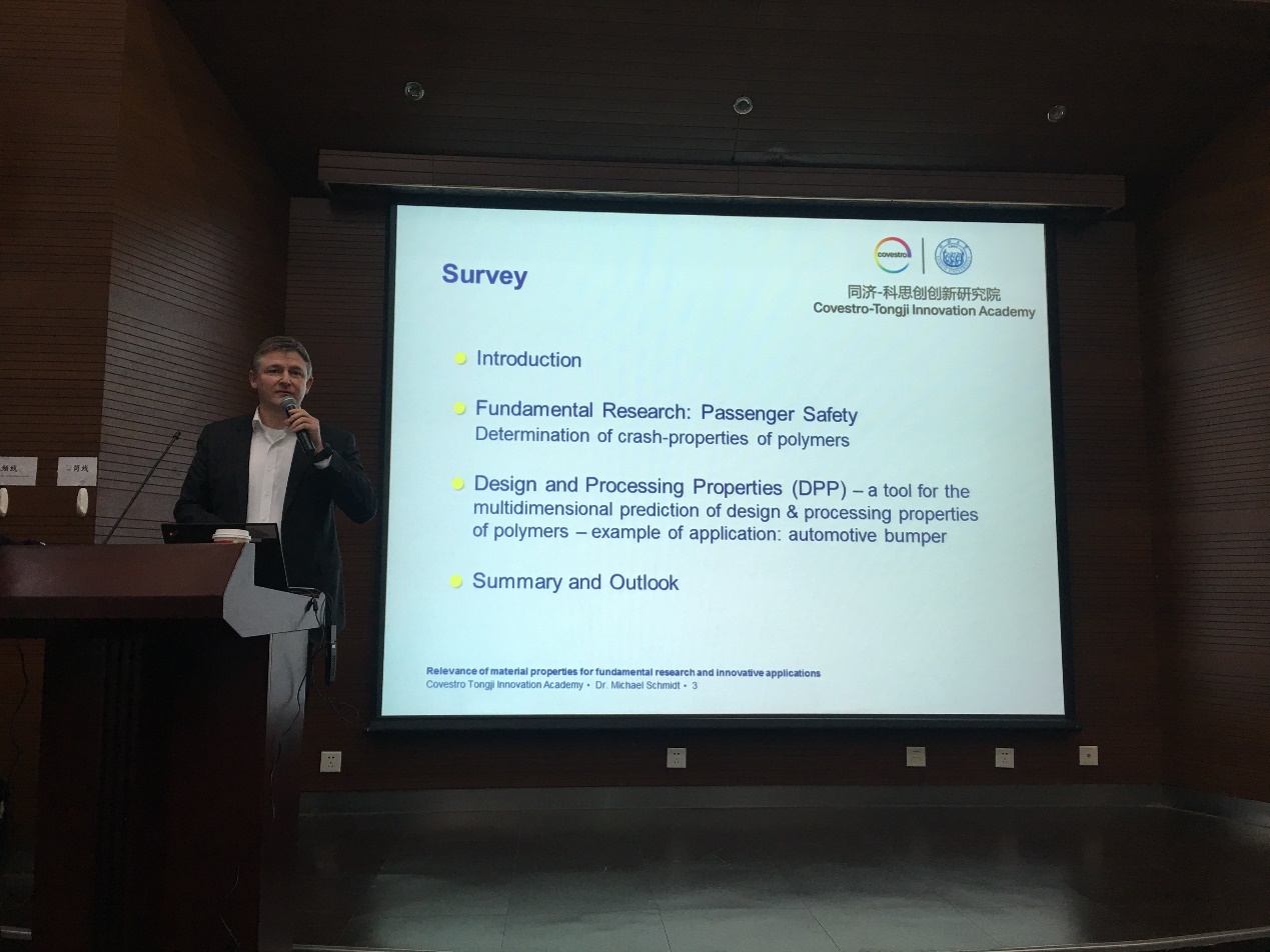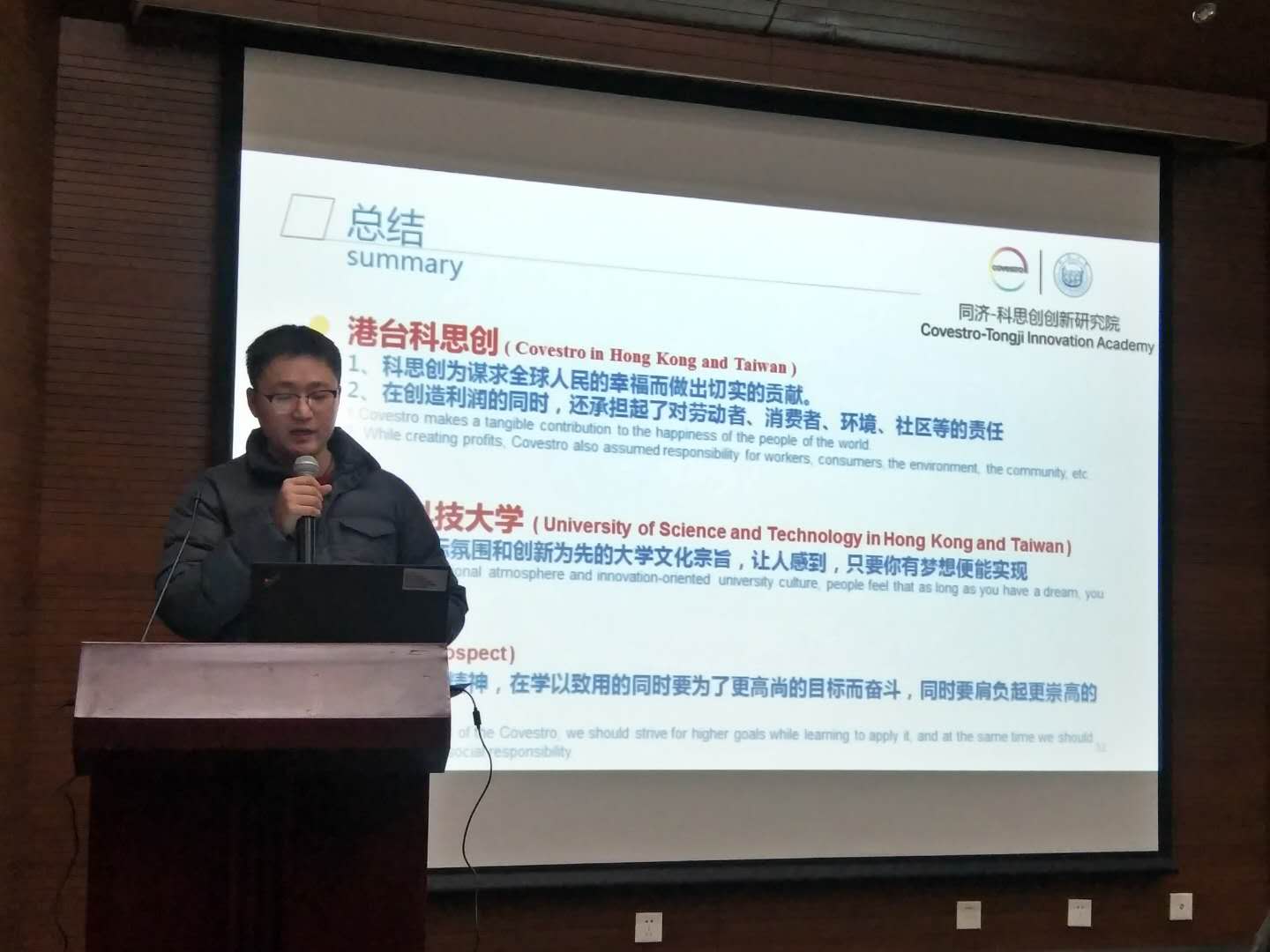 12月11日13时30分,必一·运动(b-sports)在德才馆二楼报告厅举行“同济-科思创特邀报告暨暑期实践总结大会”,学院2018级研究生、2016级本科生以及参加德国和港台暑期实践的同学前来聆听学习。本次大会共分两部分,第一部分特邀同济-科思创创新研究院院长、科思创亚太区创新负责人、科思创聚合物研发中心负责人施马可博士(Dr. Michael Schmidt)为学院师生做报告,第二部分由暑期实践交流团的学生代表——2015级本科生陈钰婷和2017级研究生王啸夫为大家做交流总结汇报。此次大会由学院党委副书记王凌凌老师主持,王德平、许乾慰、黄佳、张任远等教授出席了本次大会。