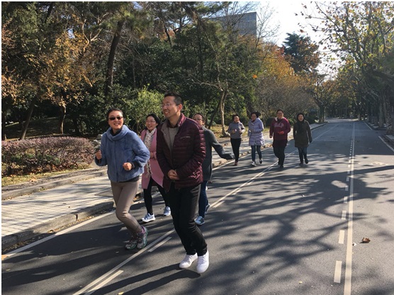 学习活动结束后,支部党员们用“校园健康跑”的活动迎接“一二九”运动82周年纪念日。党员同志们从综合楼出发,沿着四平路校区的人行步道一路经过运筹楼、大礼堂、篮球场最后在一二九大礼堂前结束。希望通过这次活动,各位党员同志可以走出办公室、放下手机,把体育锻炼作为一种生活方式,锻炼强健体魄、砥砺品格与意志、勇担时代责任,为实现中华民族伟大复兴的中国梦贡献自己的力量。