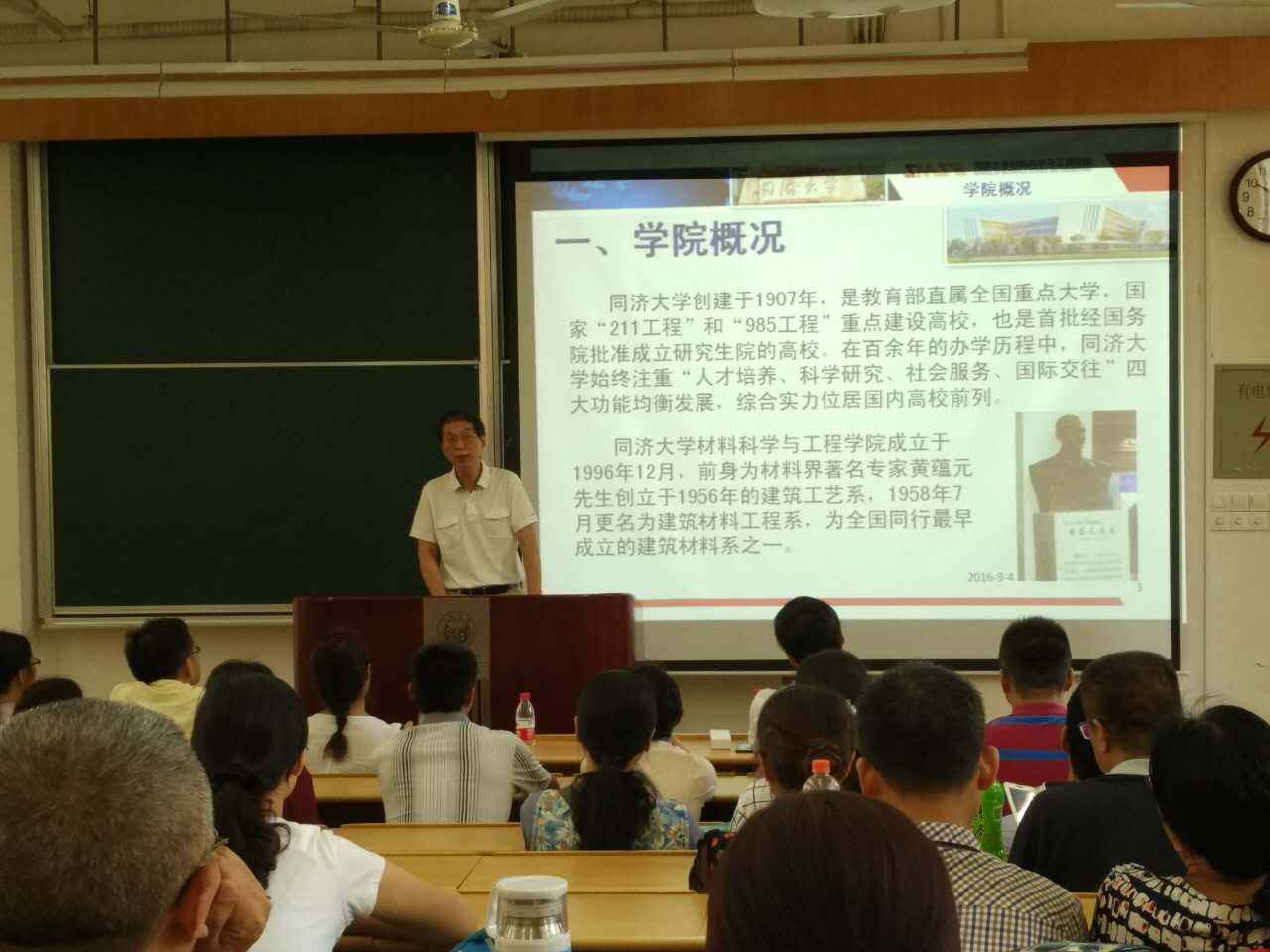 9月4日下午,在四平路校区教学北楼201教室,召开了学院2016级本科生新生家长见面会。学院党委书记王中平教授、副院长邱军教授、副书记王凌凌老师、必一运动办公室主任宋文娟老师、教务科袁怡洁老师,分团委书记任仲佳老师,新生辅导员马嘉宇老师以及七十余名新生家长出席了本次见面会。见面会由王凌凌老师主持。
