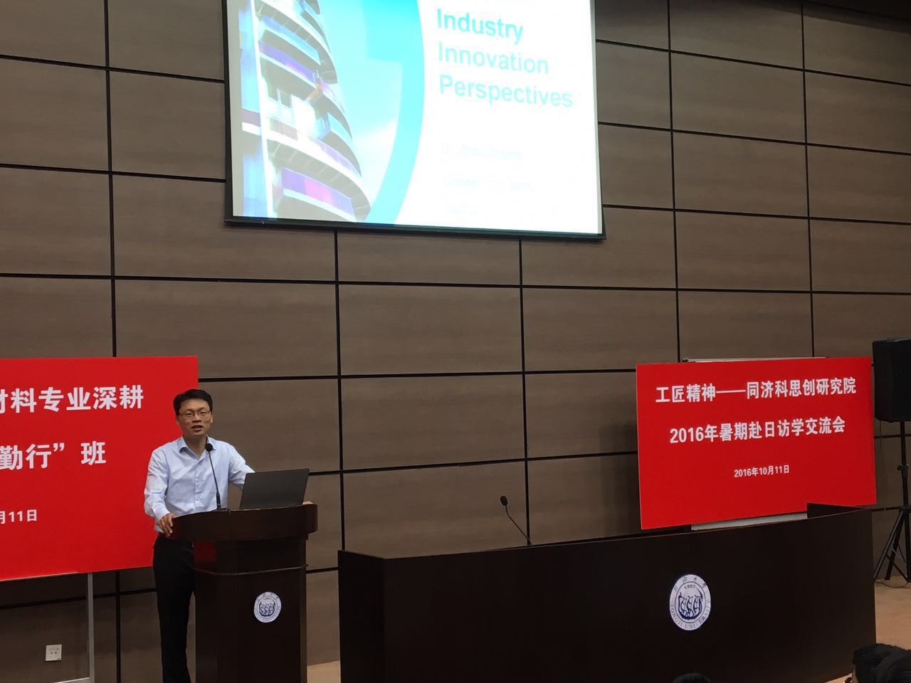 10月11日下午13:00,同济科思创研究院2016暑期赴日访学交流会暨材料专业深耕创新“勤行”班在必一运动四平路校区综合楼1606成功举行。科思创周志平博士、同济科思创研究院管理教授许乾慰教授、材料学院无机系主任严彪教授、学工办宋文娟老师出席,暑期赴日访学的24名同学和材料学院大一新生参加了此次交流会。交流会由2014级本科生李白同学主持。