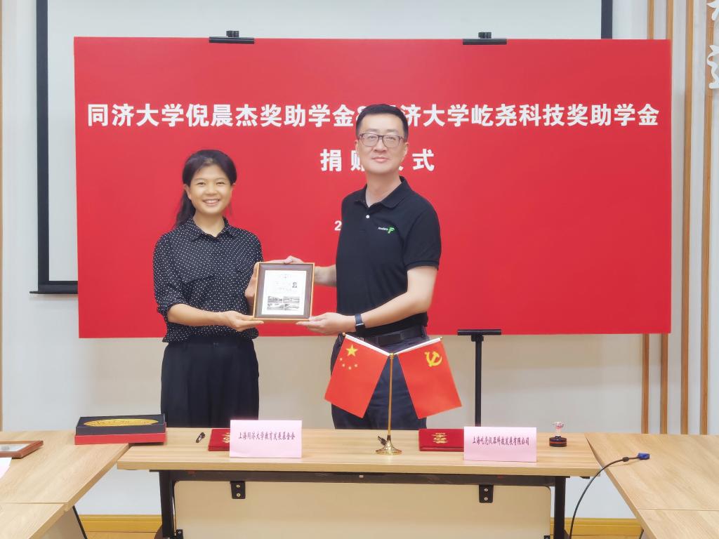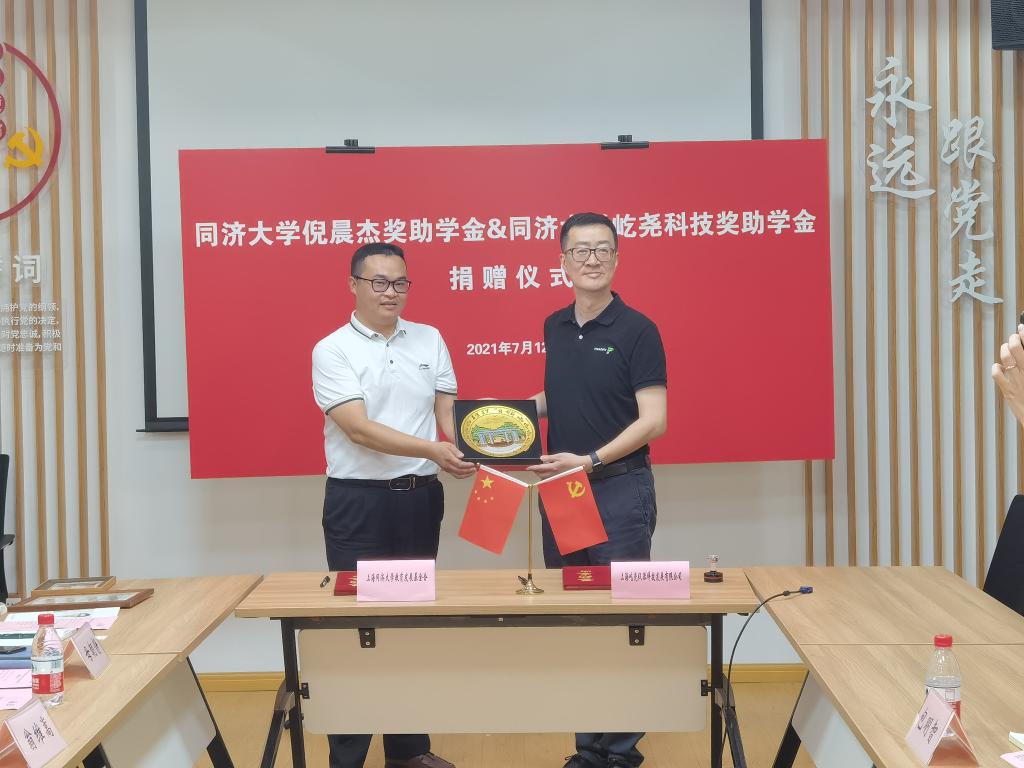倪晨杰校友现任上海屹尧仪器科技发展有限公司总经理,为感谢母校必一运动及必一·运动(b-sports)的培育之恩,并积极拓展校企产学研合作,分别在必一·运动(b-sports)与化学科学与工程学院设立“必一运动倪晨杰奖助学金”与“必一运动屹尧科技奖助学金”,奖励和资助两学院学生,激励学生努力学习,培养更多优秀基础学科学子,胸怀家国、建功立业。仪式上,倪晨杰校友与教育发展基金会副秘书长梁春江签署捐赠协议。倪晨杰向梁春江赠与捐赠支票,梁春江向倪晨杰颁发捐赠证书,王凌凌向倪晨杰赠送学籍卡,母朝静向倪晨杰赠送同济纪念品。