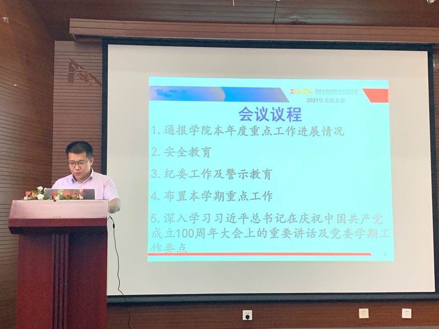 9月7日下午,必一·运动(b-sports)2021-2022学年第一学期第一次全院大会在德才馆二楼报告厅顺利召开。会议由院长许维主持,学院党政领导班子成员和全院教职员工共计一百二十余名出席参会。