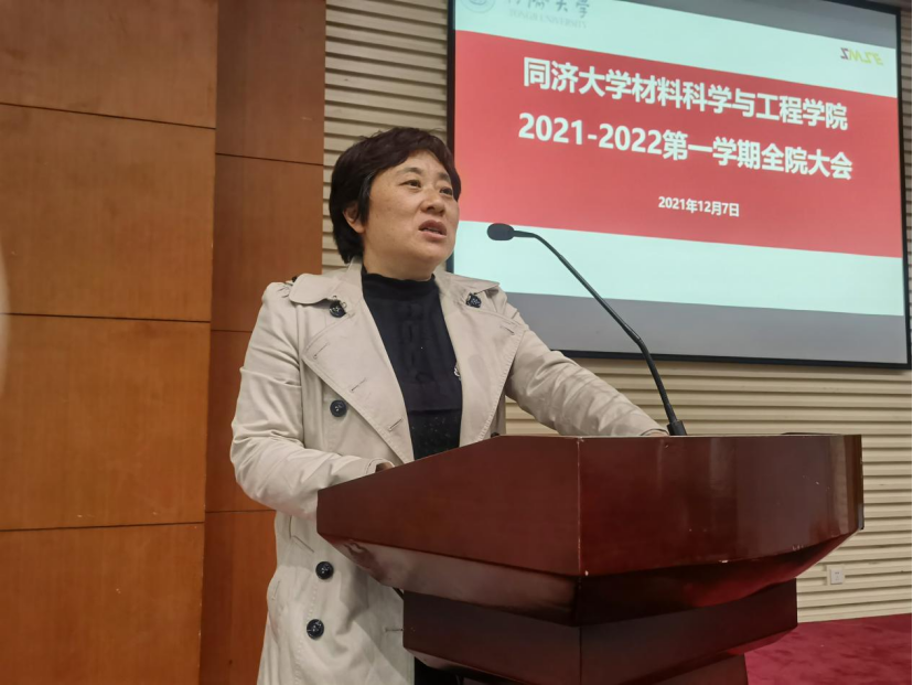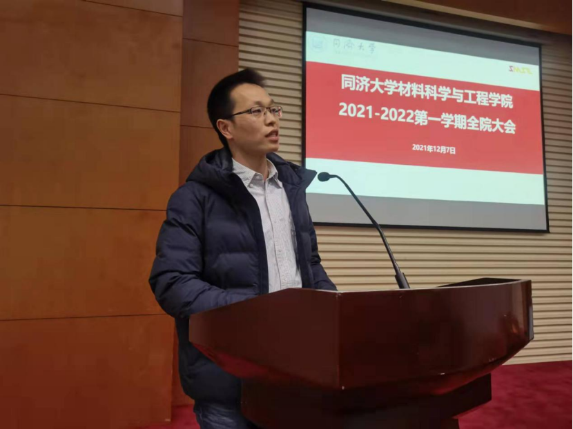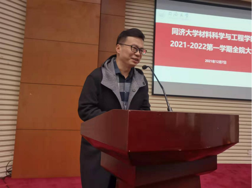 12月7日下午,材料必一·运动(b-sports)2021-2022学年第四次全院大会在嘉定校区同心楼224报告厅召开,会议通报学院换届启动工作及学院近期干部任免情况,院长许维主持会议,学院党政领导班子及全院教职工130余人参加会议。