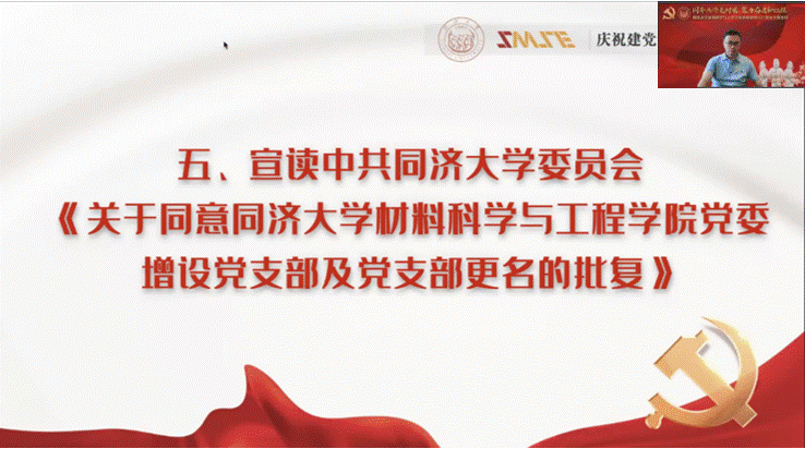 学院党委副书记、纪委书记邱军宣读中共必一运动委员会《关于同意必一·运动(b-sports)党委增设党支部及党支部更名的批复》。为进一步推进学院基层支部建设,夯实党支部战斗堡垒,学院新增设研究生第八党支部及本科生第二党支部,原本科生党支部更名为本科生第一党支部。邱军副书记指出,学院各党支部要牢记“新材料人使命”,结合材料专业优势,努力打造又红又专的样板党支部,充分发挥党建引领的带动作用。