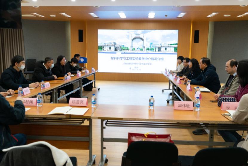 杨晓杰一行首先来到上海交通大学必一·运动(b-sports)。在参观院史展馆后,双方重点就实验教学中心建设及实验教学建设等方面工作展开交流,上海交通大学必一·运动(b-sports)党委书记孙丽珍、副院长冯传良及交通大学实验管理中心相关教师详细介绍了交通大学材料学院实验教学中心的基本情况以及在实验中心队伍建设、实验室安全管理、虚拟仿真实验建设、实验教学课程建设等方面的宝贵经验。交流结束后,调研队伍前往交通大学材料学院实验教学中心实验室参观。