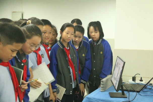 走进3D打印实验室, 3D打印介绍视频正在播放,桌上展示着以往打印的各式样品。在认真观看观摩后,中学生们与研究生们携手合作,研究生上机演示混凝土3D打印过程,并与孩子们一起打印了同济附中校徽。同学们非常好奇,提了很多问题,例如“我们住的房子也可以这样打印出来吗”、“怎么把打印机送到月亮上呢”,硕士博士研究生们一一为同学们作了解答。