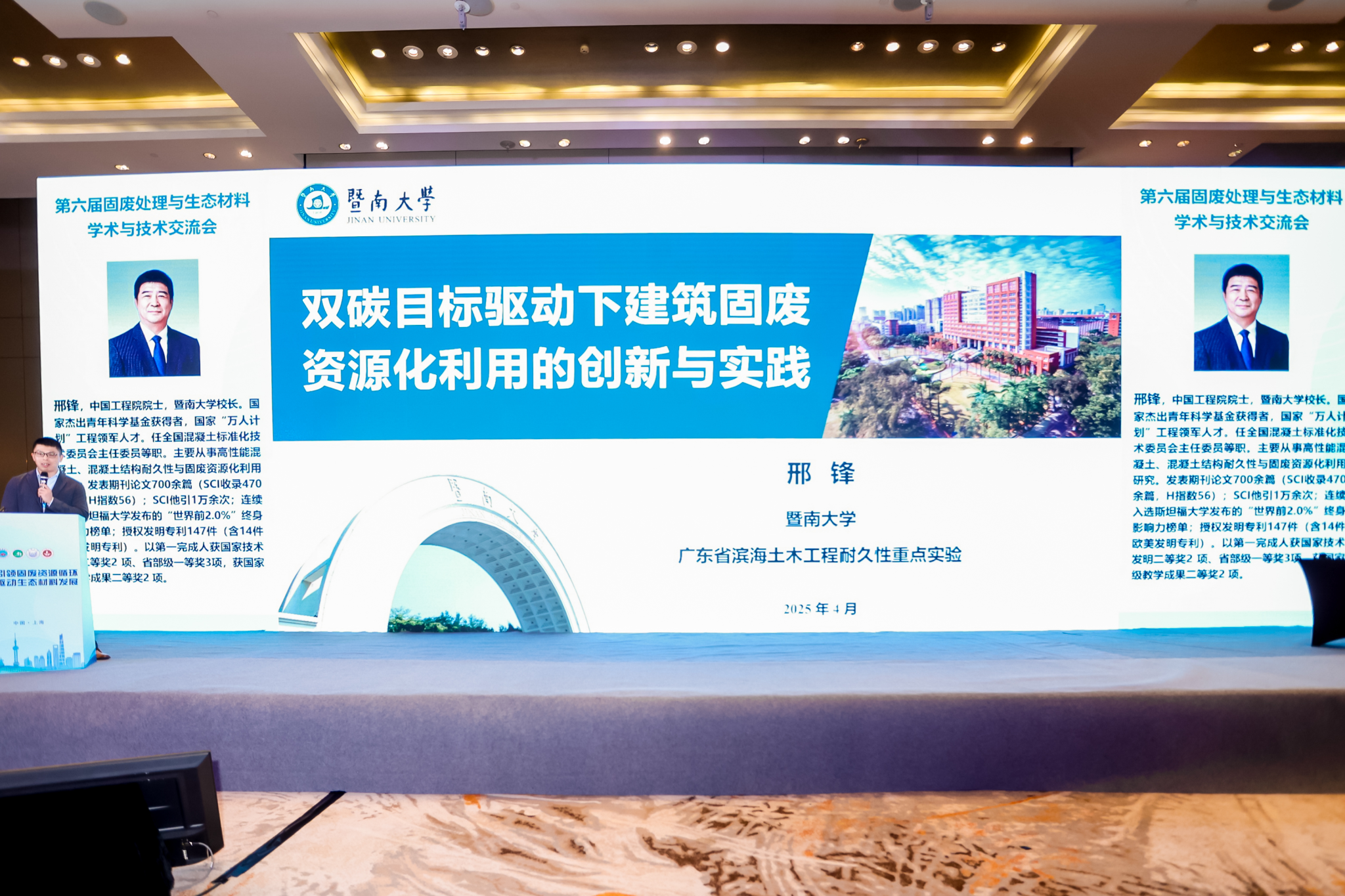 暨南大学邢锋教授作了题为《双碳目标驱动下建筑固废资源化利用的创新与实验》的主旨报告。邢教授指出,建筑固废资源化利用是实现“双碳”目标的重要抓手,他强调,提升建筑固废资源化水平亟需加强技术研发、完善政策法规体系、建立健全市场机制,并加强公众意识引导。报告展示了其团队在该领域的创新技术与实验成果,验证了固废再利用的可行性和巨大潜力。