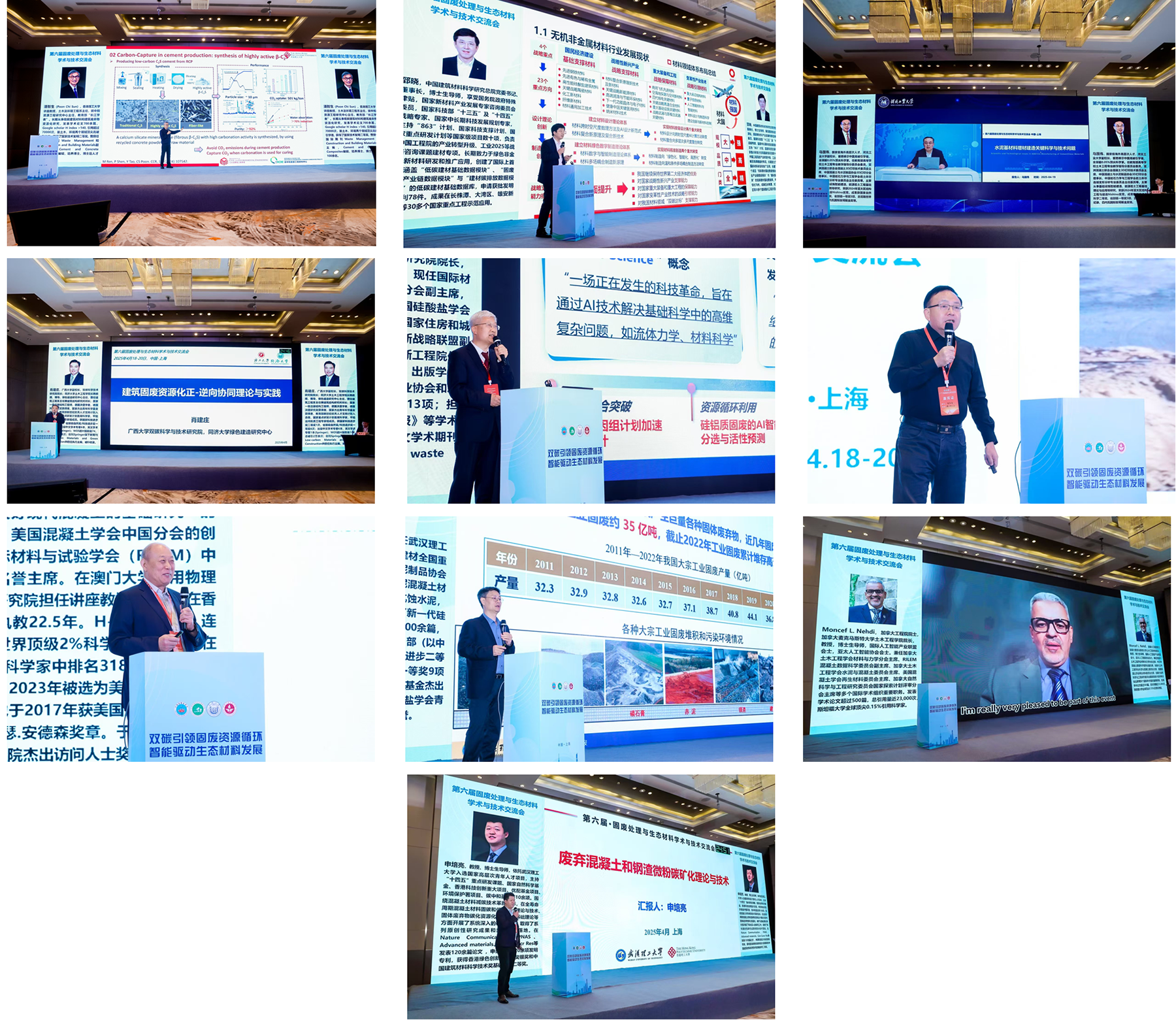 潘智生教授介绍了“加速碳化技术”在废弃物资源化中的应用前景,展现了其在建筑减碳与资源循环中的巨大潜力。此外,郅晓教授、马国伟教授、肖建庄教授、王栋民教授、陈忠平教授、李宗津教授、王发洲教授、Moncef L. Nehdi教授和申培亮教授,分别围绕低碳建材研发、增材制造、建筑固废资源化协同创新、材料基因组与人工智能融合、城市矿产开发、长寿命混凝土、工业固废碳矿化与新材料设计等前沿课题展开了深入交流与系统研讨,为推动固废资源高效利用与绿色建材技术进步提供了多维度的理论支撑与技术方案。