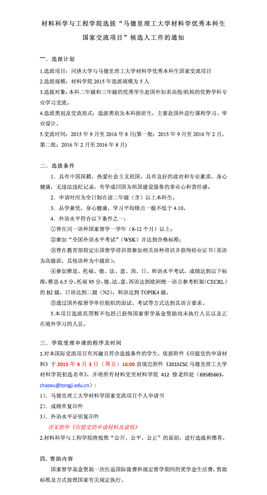 2015CSC马德里理工大学材料学院初选名单