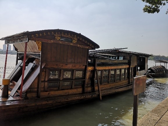 到了南湖,小组成员跟随讲解员的指引,乘坐游船抵达湖心岛,即烟雨楼和嘉兴中共一大会址所在地。在这里,他们根据之前所作的功课,重新回顾了历史场景,感受到了革命路途中的种种艰辛不易,明白了“红船精神”的深刻内涵和丰富的精神价值,对革命先辈不屈不弃顽强精神的敬佩之情油然而生。
