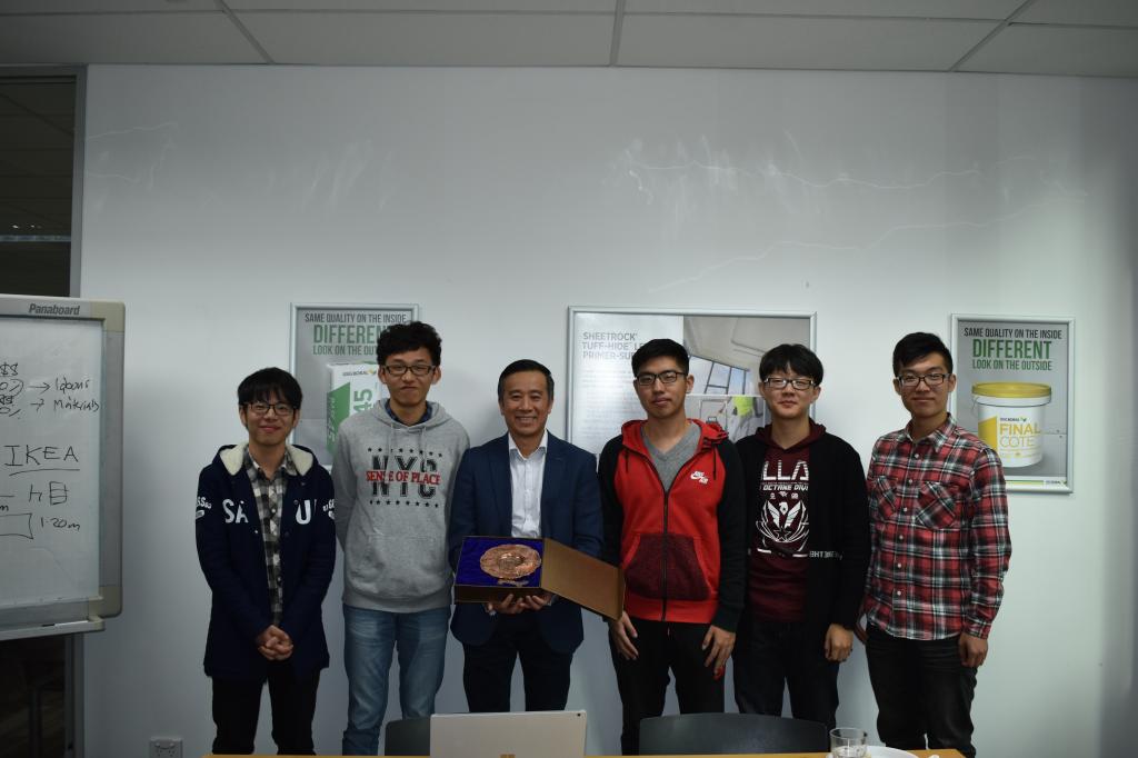 上午9时,游学团队一行人跟随杨经理前往优时吉博罗公司在墨尔本的石膏板专卖店。抵达专卖店后,优时吉博罗公司的员工们热情的迎接了我们,华人工程师Daniel Lim充当我们和员工们之间的翻译官。在经过短暂的见面介绍后,店长让一名从事石膏板工作三十多年技艺精湛的技师带领我们七人参观专卖店。这位和蔼可亲的技师向我们详细的介绍了各种各样的用于石膏板固定和拼装的龙骨钢架和钉枪、具有不同种功能的各式石膏板以及用于测试石膏板物理和化学参数的方法与设备。不仅如此,技师还亲自动手向我们展示了石膏板与石膏板之间的夹缝处理,产品间优劣的简单对比,并对装修过程需要的工具进行了简单介绍。这次专卖店的参观,让我们对石膏板的类型和使用方法有了更加全面的理解。同时也通过与杨经理的交流,了解了国内外石膏板销售的方式的对比,从中我们也得到了差异原因的一些答案,可谓不虚此行。