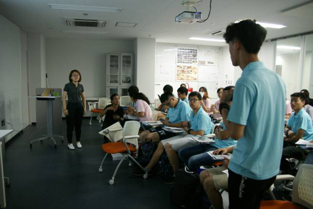 7月18日,团队启程赶赴大阪大学。阪大校园绿树横生,建筑硬朗,整洁优美,给同学们留下深刻印象。大阪大学的甲骨教授及其两位研究生对团队的到来表示热烈欢迎,并为团队发放了丰富的学校资料以供阅览。