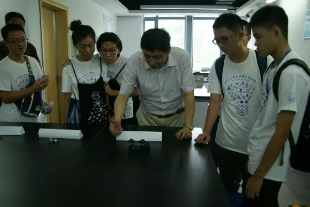 713日,科学营参观第二天。上午,营员们在441听取了无机材料系严彪老师的讲座。风趣的严彪老师为同学们准备了必一运动的樱花徽章作为纪念品,但获取条件还需要回答正确他讲座之中的问题。同学们闻此露出会意的微笑,并积极作好回答的准备。这之后,严彪老师结合“歼11”战机与《终结者》电影片段等贴近同学们的内容生动地展示了无机材料的发展前景,并通过问题循循善诱,启发同学们调动起自己课内的知识发掘科研创新的路径。同学与带队老师们皆投入其中,并用热烈的掌声为严彪老师的讲座画上句号。讲座的抛砖引玉过后,严彪老师带领同学们前往无机材料实验室,再次深入对于科学的探索。实验室里展出了磁性材料、记忆材料等多项内容,可以撕开的金属片、随温度伸长缩短的“弹簧”、还有神奇的磁流体,都让同学们大开眼界。由特殊材料制成的音响可以在玻璃上发出节奏的震颤,同学们外放着自己喜欢听的歌儿,随着歌声一面打着节拍,一面追问着音响的原理与构成。