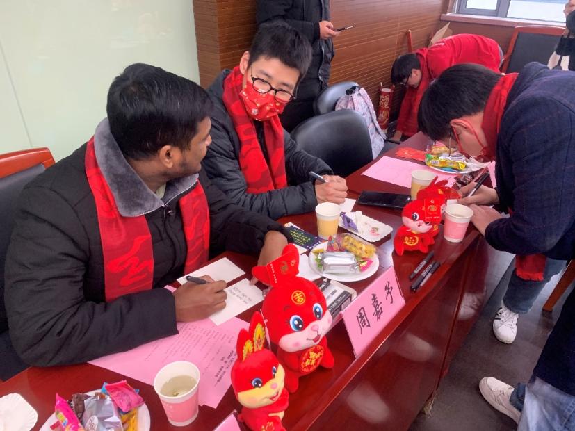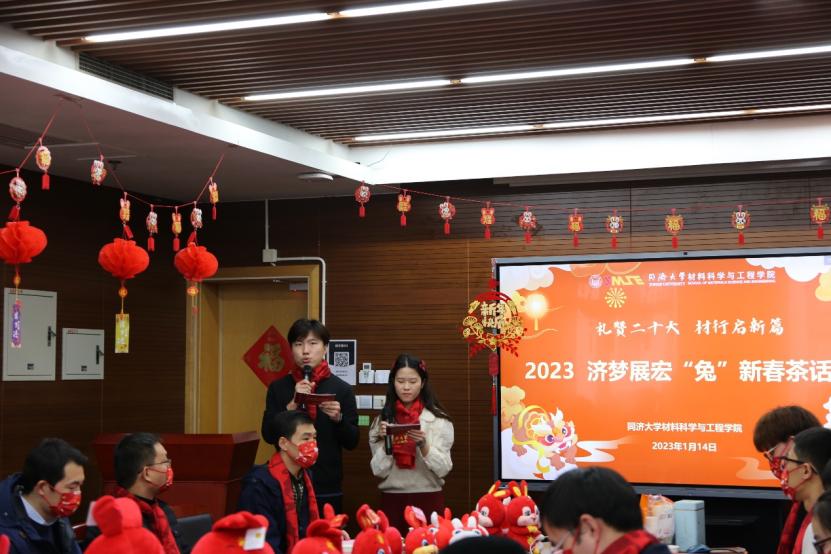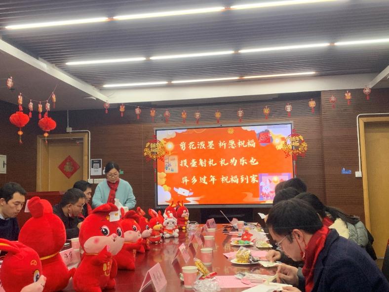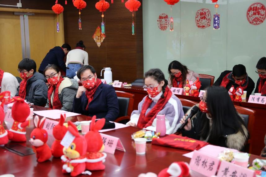 回望2022年,我们同舟共济,共克时艰,为打赢上海疫情防控阻击战贡献了“同济力量”;我们勇于创新探索,在最前沿的领域攻坚克难,助力新材料强国发展战略。展望2023年,奋进新征程的时代号角已吹响,中国式现代化的宏伟蓝图已铺展。在新春即将来临之际,学院于德才馆441会议室举办“礼赞二十大,材行启新篇——2023,济梦展宏‘兔’·新春茶话会”活动,通过风采展示、茶话年俗、乐猜灯谜、共剪窗花、翰墨迎春、投壶射礼等形式多样、内容丰富的活动,让同学们感受家的温暖,营造祥和喜庆的新春氛围。本次活动中,必一运动新生院党委副书记、纪委书记、学(研)工部副部长方雅静,必一·运动(b-sports)院长许维、党委副书记梁春江、2021级硕士班班主任罗巍以及必一运动办公室老师们共同出席,留校本科生、研究生、留学生以及少数民族学生代表共计20人参加本次活动。