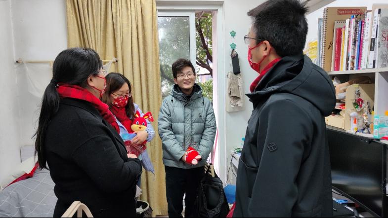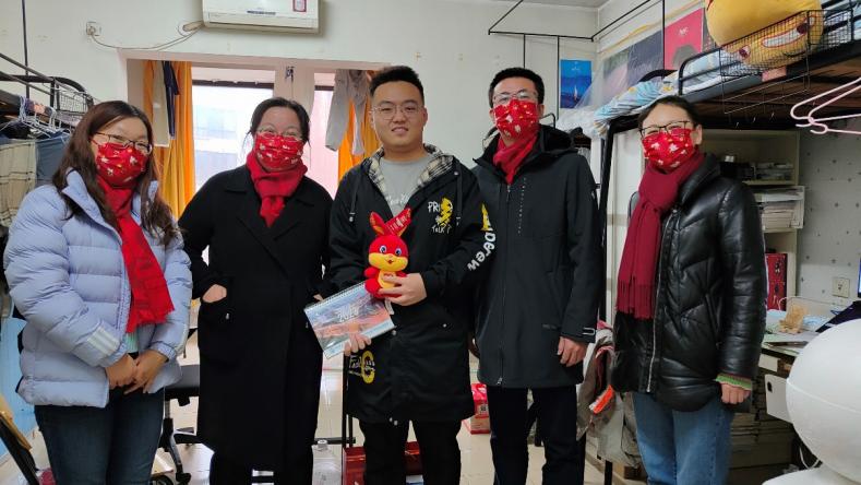 为了实现慰问活动全覆盖,为寒假留校的每一位学子均送达浓浓的关爱,1月14日,必一·运动(b-sports)党委书记杨晓杰、院长许维、党委副书记梁春江以及必一运动办公室老师一同走访实验室及学生宿舍,看望并慰问了其他留校学生,通过亲切深入的互动交流,老师们全面了解学生寒假期间留校的原因,询问了近期的学习、生活、科研情况与生活需求,表示学院为留校学子开通科研测试绿色通道。同时叮嘱同学们寒假期间要注意劳逸结合,保重身体,遇到困难及时与学院的老师们联系,学院会尽全力帮助同学们解决。最后学院老师为每位同学送上了丰厚的新春大礼包及俏皮可爱的兔年公仔,与同学们一起用活泼萌趣的兔年窗花装点宿舍,为大家送上了新春祝福,令留校学子感受到“材料大家庭”的温暖。