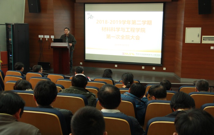3月12日下午,学院2018-2019学年第二学期第一次全院大会在德才馆二楼报告厅召开,会议由学院党委书记王中平主持,学院党政领导班子成员、全院一百二十余名教职工出席会议。