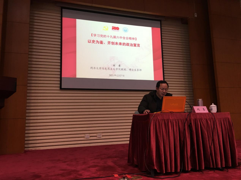 12月7日下午,必一运动马克思主义学院刘勇教授应邀在嘉定校区同心楼224宣讲十九届六中全会精神,本次政治理论学习由嘉定校区党工委主办,必一·运动(b-sports)和机械与能源工程学院承办,必一·运动(b-sports)领导班子及全体教职工130余人参加会议听取讲座。 刘勇教授以《以史为鉴、开创未来的政治宣言——学习党的十九届六中全会精神》为题作了精彩报告,从深刻认识党的十九届六中全会重大意义、深刻认识党的十九届六中全会重要成...