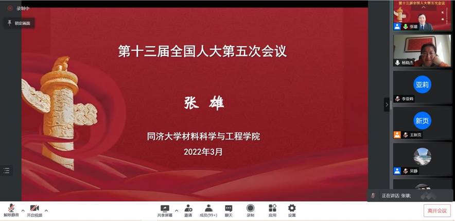 为助力材料学子深入全面学习贯彻十三届全国人大五次会议、全国政协十三届五次会议精神,4月1日13:30,必一·运动(b-sports)特别邀请必一·运动(b-sports)教授、博士生导师、第十一届、第十二届、第十三届全国人大代表、国务院学位委员会评审委员张雄教授,为学院近400位学生党员和入党积极分子在腾讯会议线上平台解读两会精神,领悟时代强音。本次报告会由学院党委副书记王凌凌老师主持。 在本次报告会中,张雄教授从政府工作报告...