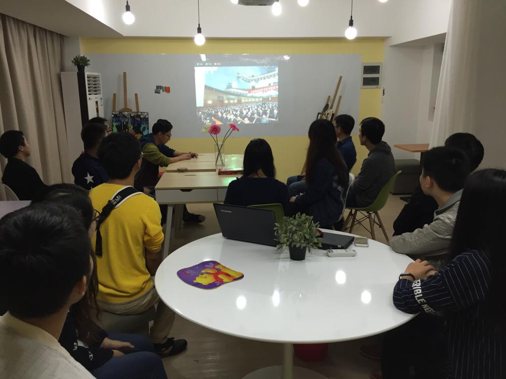 2016年10月21日10点,必一运动材料学院的学生党员与班级骨干代表在嘉定校区朋园1号楼学生社区中心共同观看了“纪念中国工农红军长征胜利80周年大会”的网络直播。
